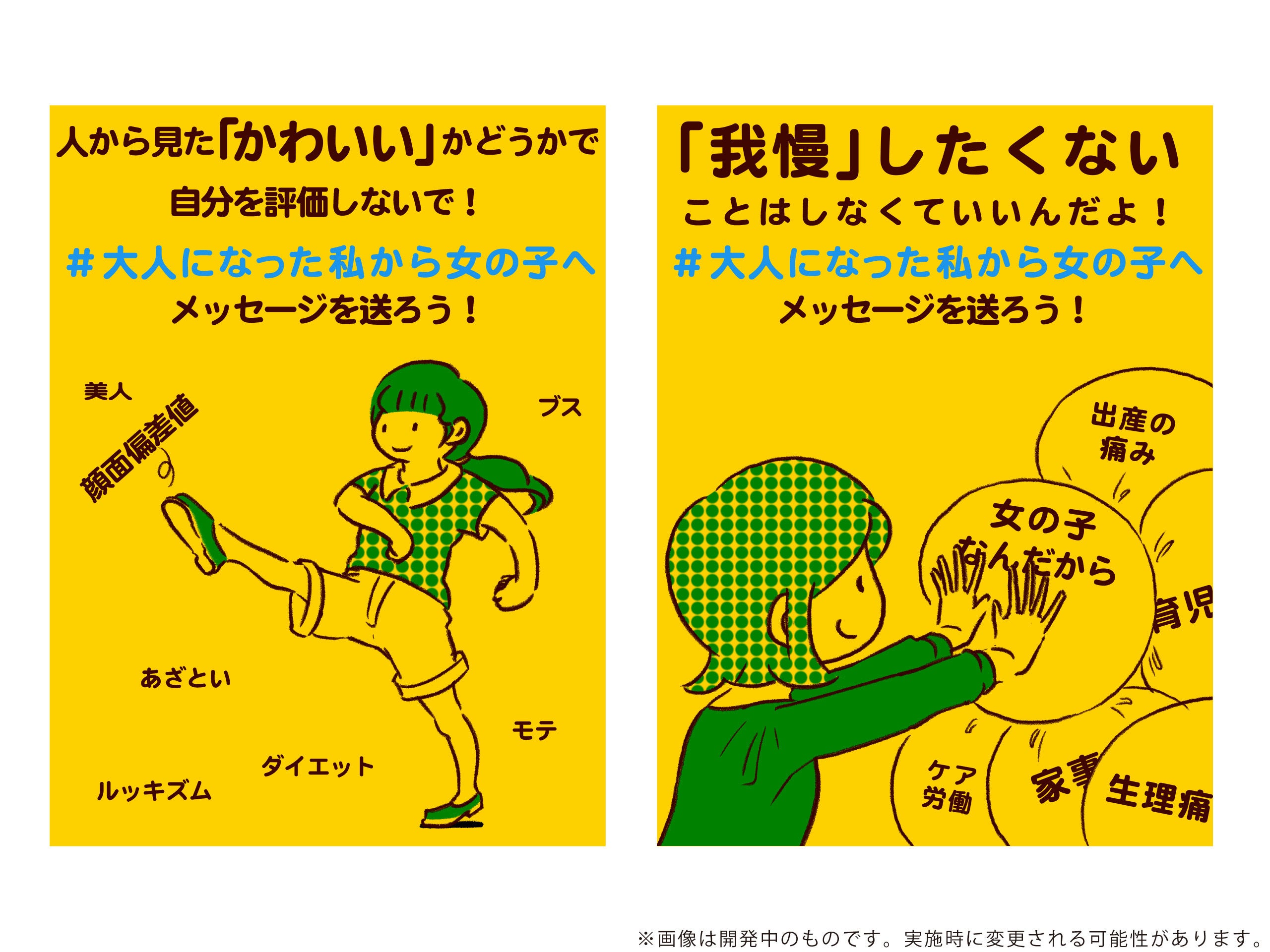 大人の女性から、自身が体験したジェンダー・バイアスを募集し、可視化すると共に、その声を今の女の子たちへ向けたポジティブな応援に変えて届けていくキャンペーンです。3月3日のひな祭り~3月8日の国際女性デーにかけて、大人の女性から若い女の子世代へ、より良い未来に向けた言葉のバトンをつなぐことを目指します。
