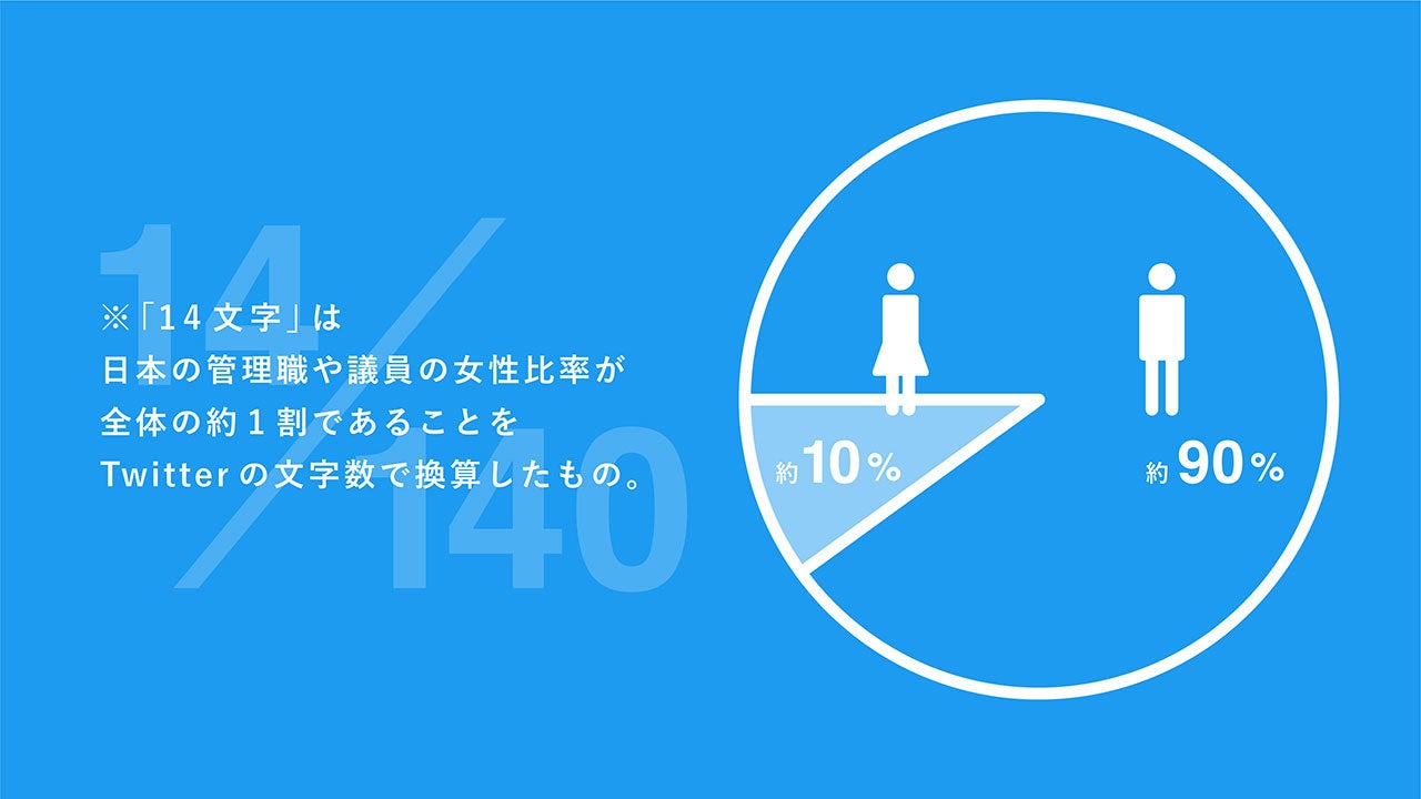 日本における女性管理職や女性議員の比率が全体の約1割であることから、社会における声の大きさを1割と仮定。それをTwitterのツイートに置き換えた場合、140文字中14文字しか社会に声が届かないことになり、その不条理を疑似的に体験してもらうキャンペーンです。自由に発言や会話ができるTwitterというプラットフォームの中に、あえて社会問題と連動した制限を設けることで、より多くの人にこの問題について考えてもらう機会になればと考えています。