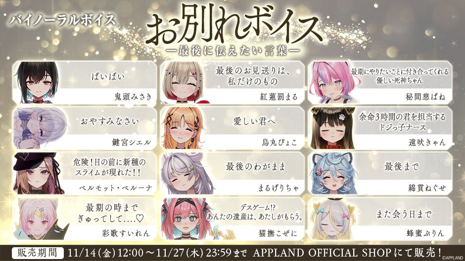 アップランド所属「.LIVE」・「ぶいぱい」メンバーによるバイノーラル『お別れボイス━最後に伝えたい言葉━』が11月14日(金)より販売開始!