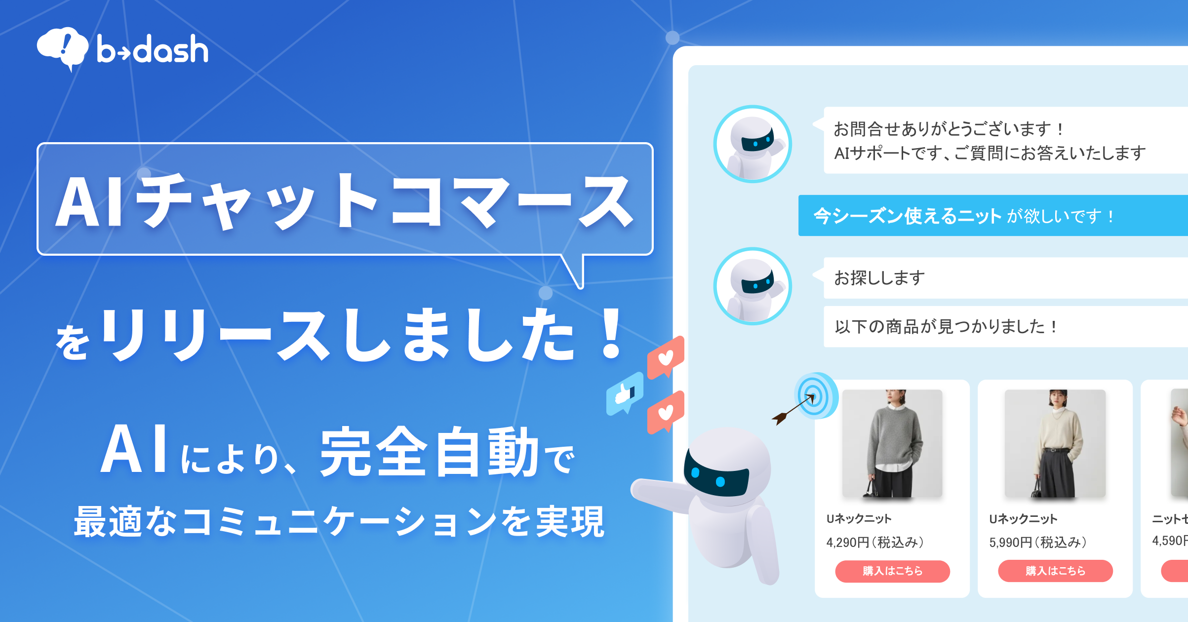 b→dash、AIチャットコマース機能をリリース〜b→dash上の顧客データを学習したAIが購買体験を最適化〜