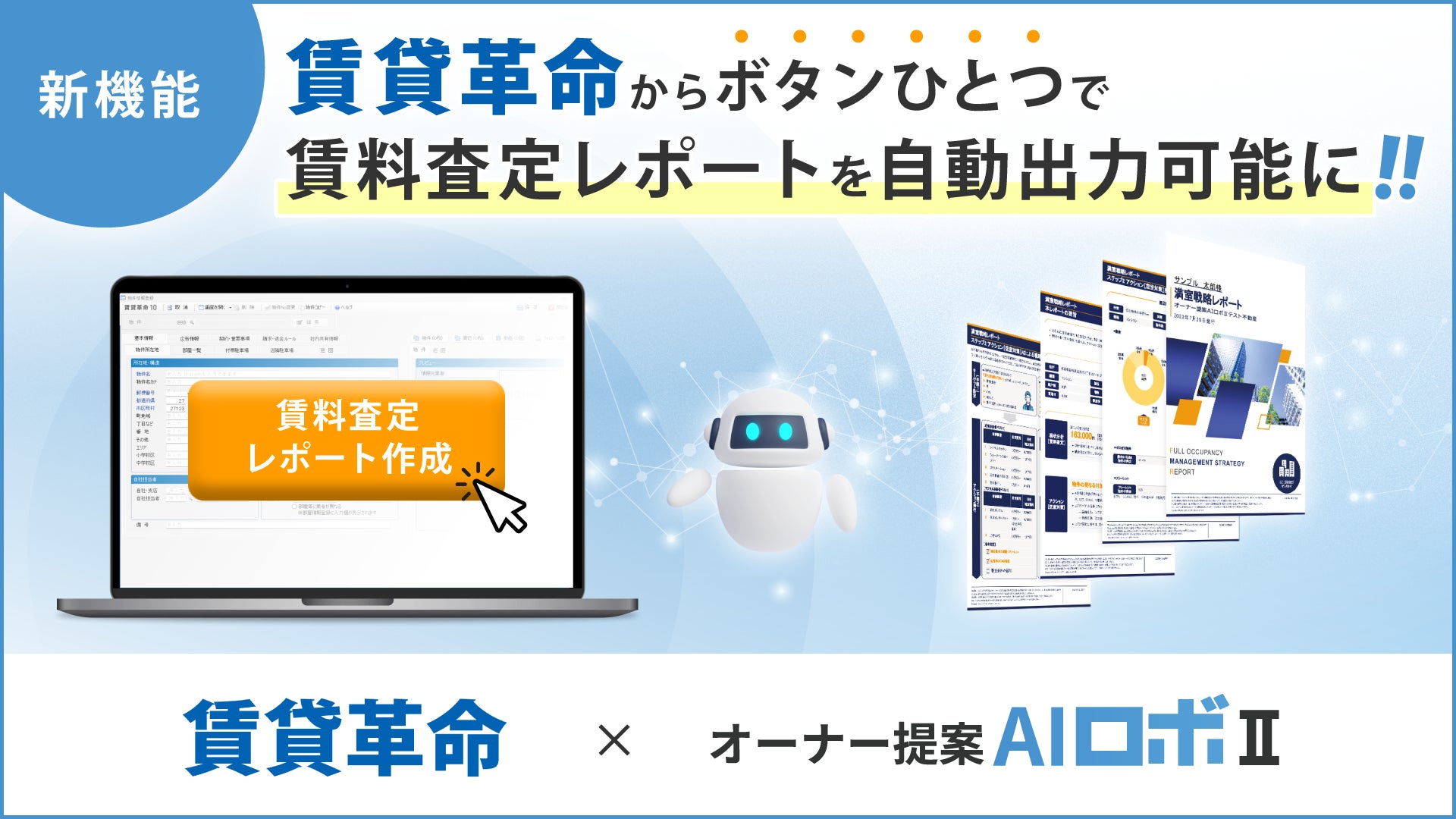 【新機能】賃貸管理システム「賃貸革命 」と賃料査定ツール「オーナー提案AIロボII」が連携開始!