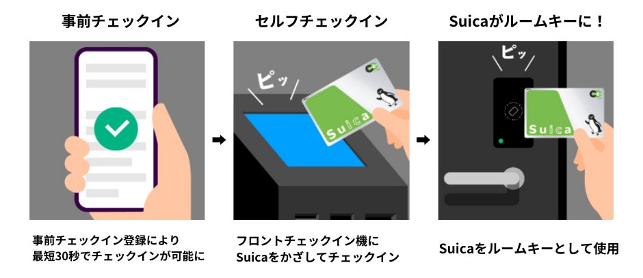本サービスにより、宿泊者はSuicaをはじめとする交通系ICカードやスマートフォンをルームキーとして登録し、JR北広島駅からホテルの客室までスムーズにアクセスできるようになります。