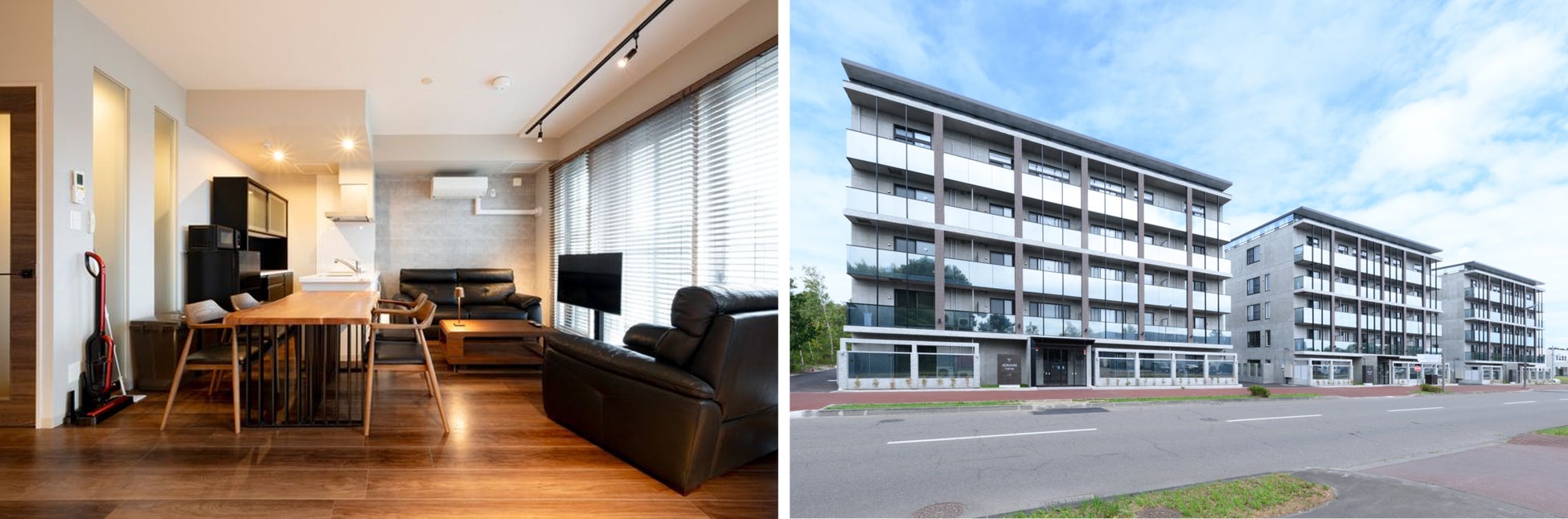 グループや家族の「みんな」で泊まれることに、宿泊施設を意味する「inn」を掛け合わせた当社独自のアパートメントホテルブランドである「Minn (ミン)」を2022年12月に北海道にも開業いたしました。「Minn 千歳」は新千歳空港からひと駅に位置するJR「南千歳駅」から徒歩8分の場所にあり、観光、アクティビティ、スポーツなど多目的に旅行の拠点としてご利用いただいているほか、運営クルーとして近隣の方々も活躍されています。