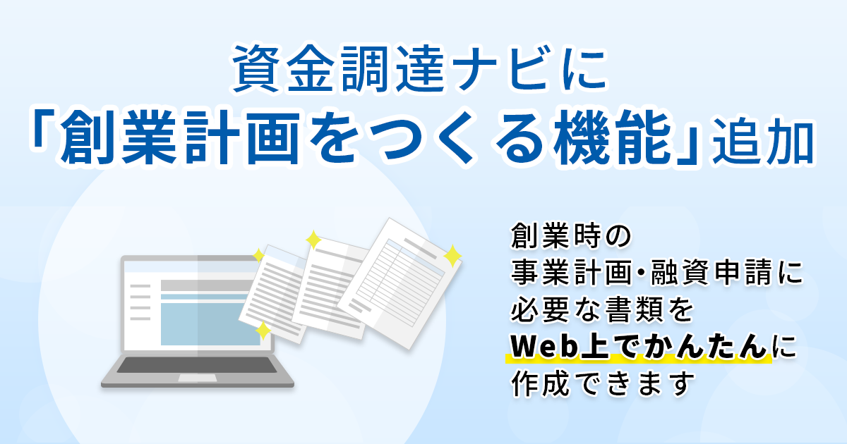 創業時の資金調達に活用できる「創業計画をつくる」機能をリリース