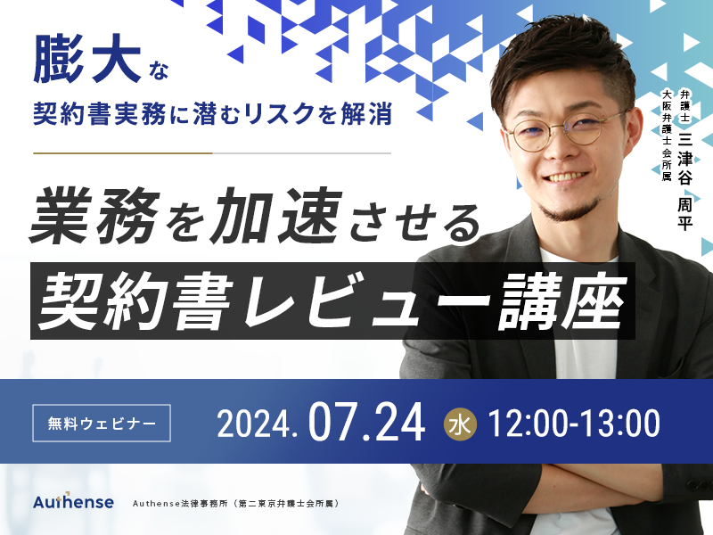 【無料ウェビナー開催2024.7.24】膨大な契約書実務に潜むリスクを解消 業務を加速させる契約書レビュー講座|Authense法律事務所