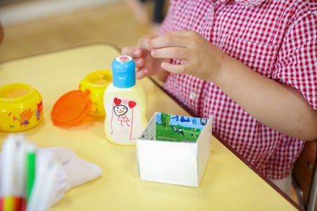 ビオレUVキッズ ピュアミルクのボトルに、子どもたちが自由に絵を描いたシールを貼り世界にひとつだけの「マイボトル」が完成するので、自分のボトルに愛着がわき、日やけ止めを塗る習慣にもつながります。