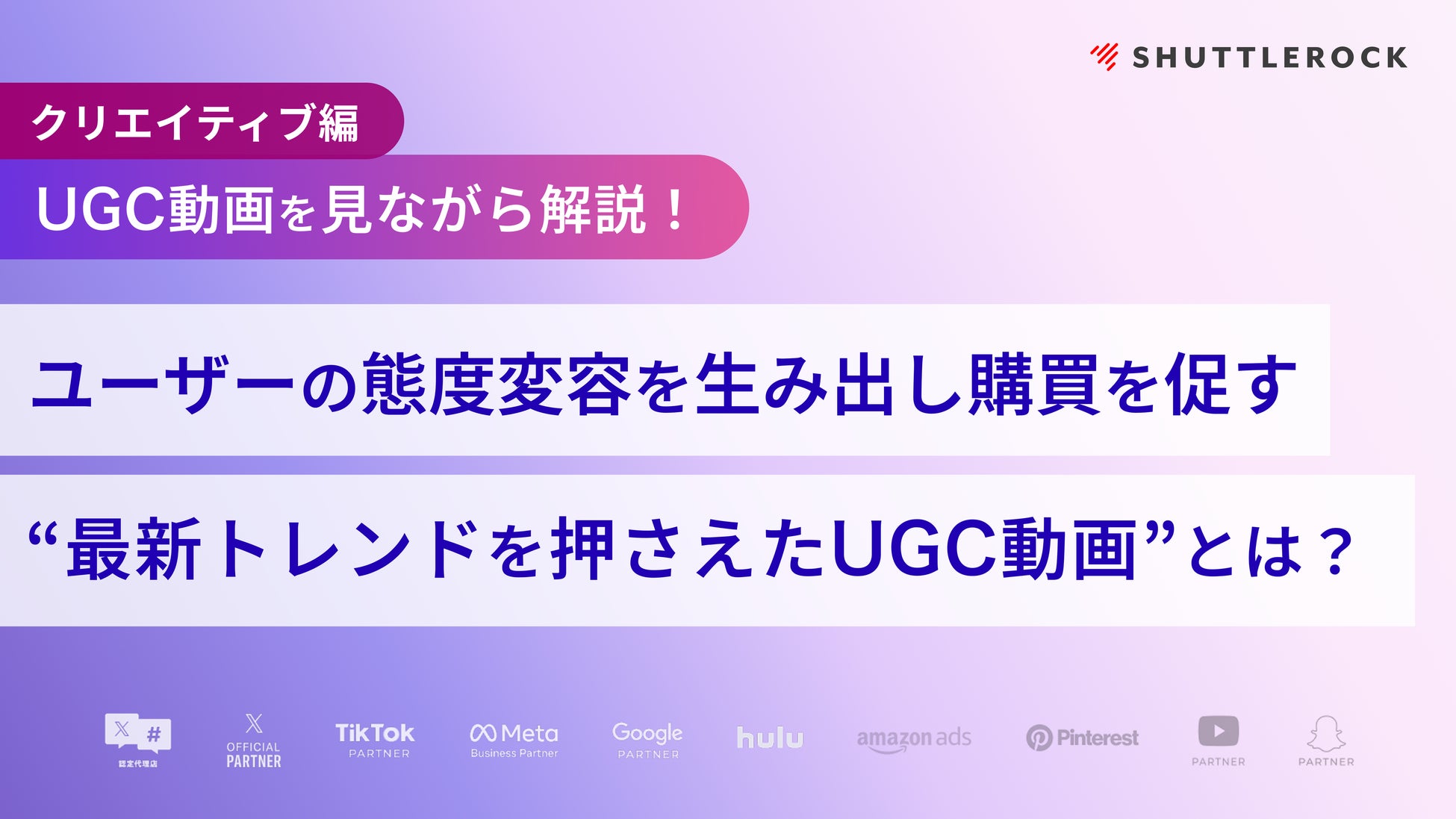 シャトルロックジャパン株式会社(本社:東京都新宿区、代表取締役:金光 展意、以下、シャトルロックジャパン)は、9大 SNS の公式パートナーとしてのノウハウや実績をもとに、今知っておくべき UGC 動画の最新トレンドやマーケティング活用方法などについてまとめた「最新 UGC トレンドの活用法」の解説資料・動画の無料配布を開始いたしました。