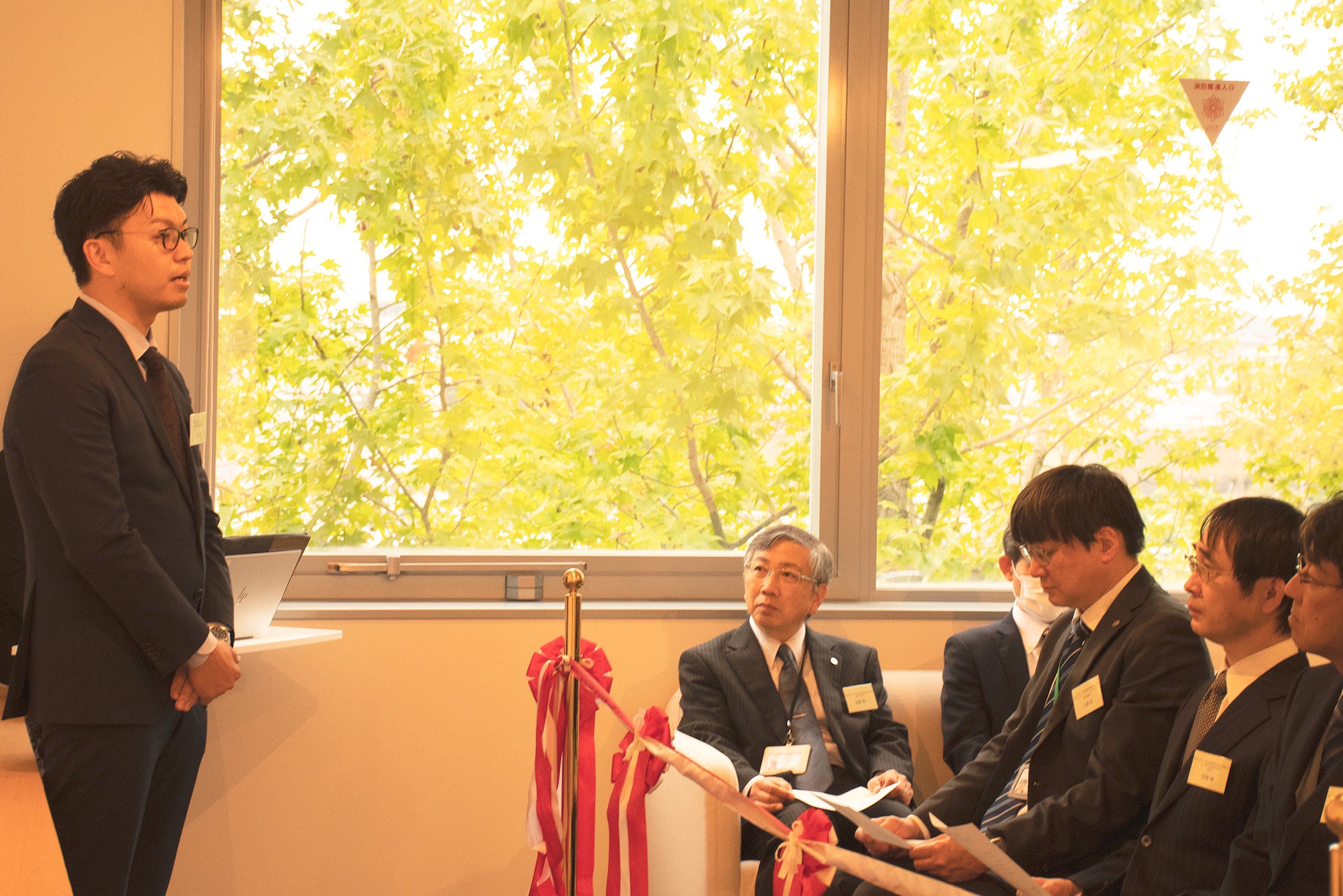 アカリクラウンジのオープン日を迎えられたこと、大変喜ばしく感じております。10月3日にオープニングセレモニーを開催し、大学関係者・企業人事担当・県庁職員・記者等、30名を超える多くの方々がご参加され、大きな期待を寄せて頂きました。
