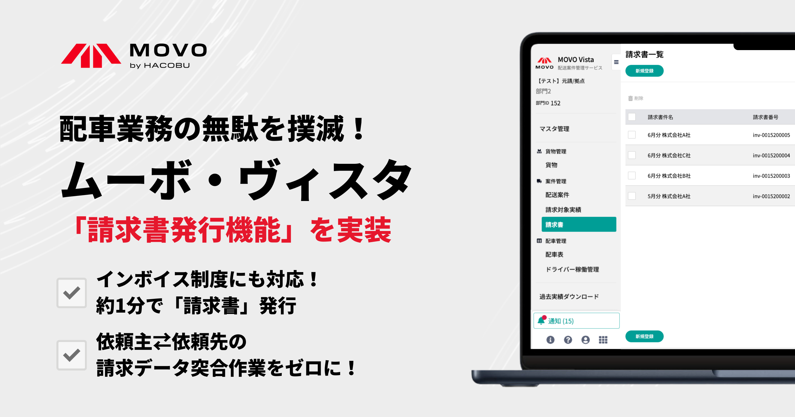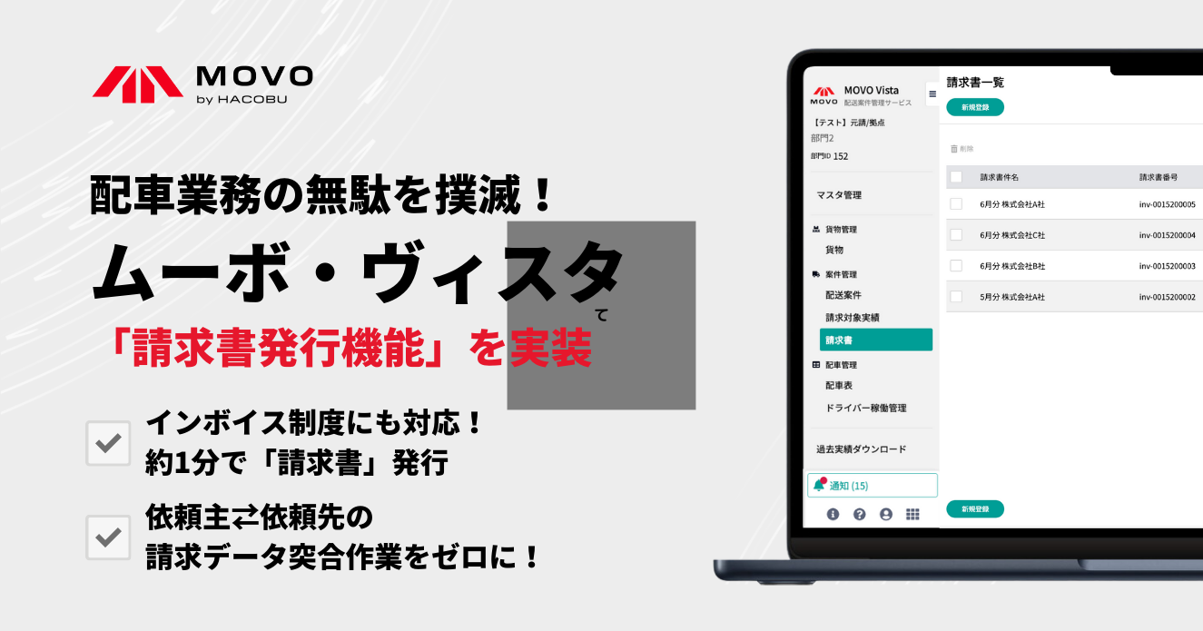 配送案件管理サービス「MOVO Vista」、「請求書発行機能」をリリース