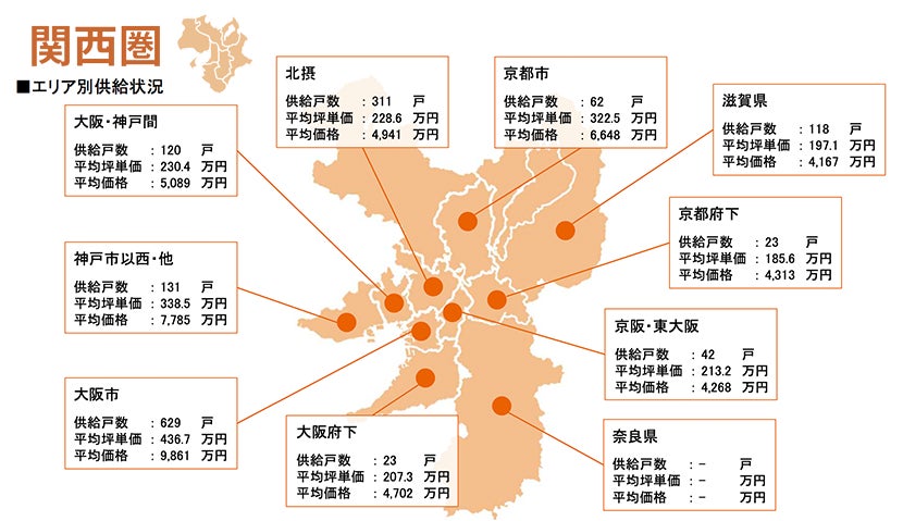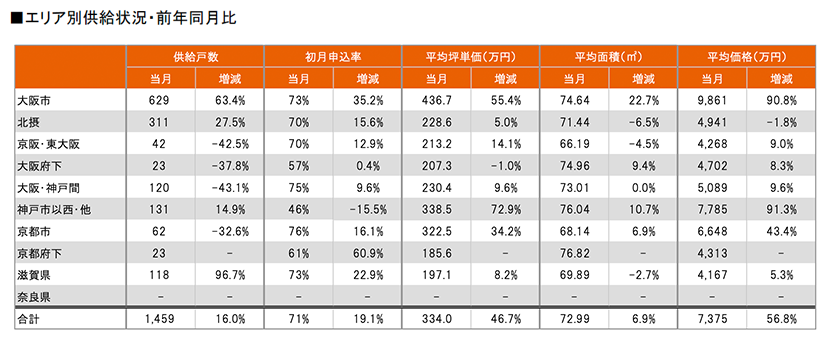 集計対象エリアは首都圏及び関西圏となっており、それぞれのエリア別相場情報、需給動向、