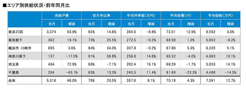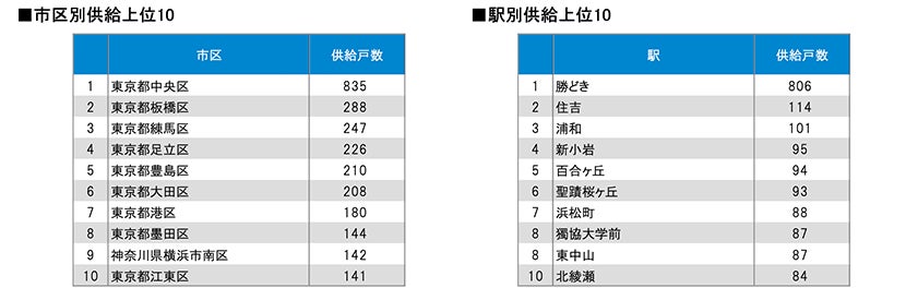 着工件数等を集計しました。また、前年同月における比較や市区別、駅別の供給ランキング等も算出しました。