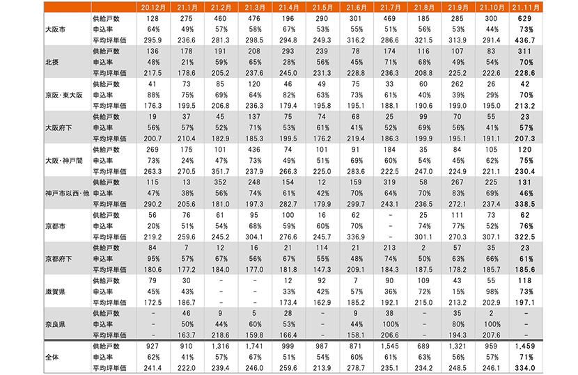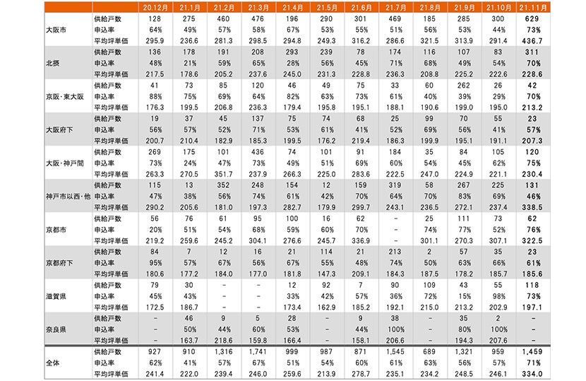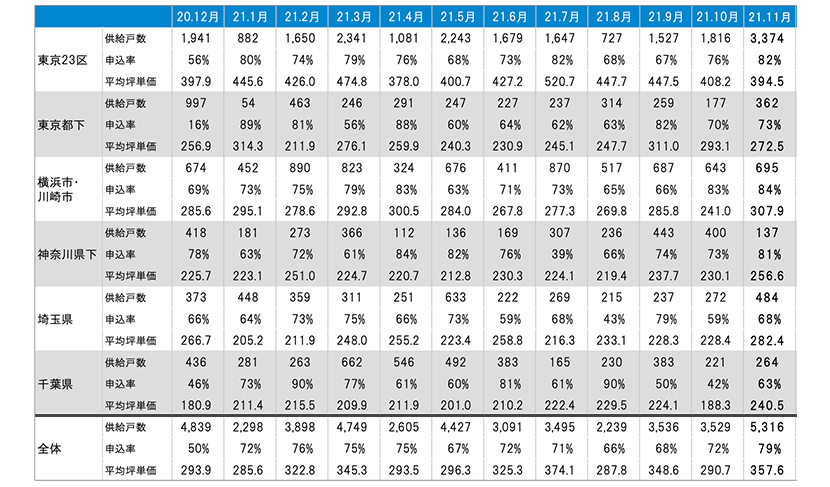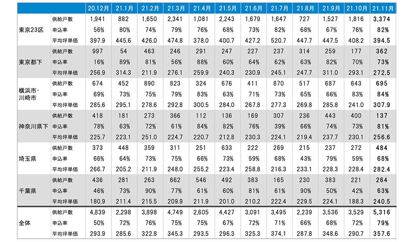 月例新築マンション動向発表~供給戸数が一都三県で46%、関西圏で12.7%増加(2021年11月度 分譲実績)|2022年2月号