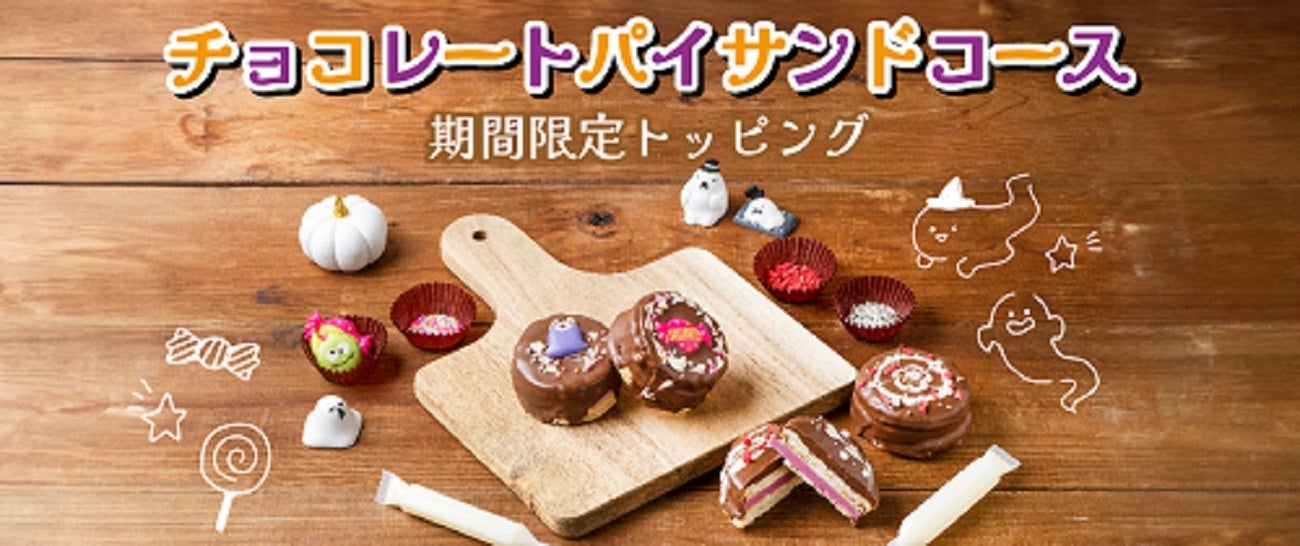 体験では、人気のお土産「美冬」のパイ生地とフィリングを組み立てて、トッピングやチョコペンで飾り付けを行う、「チョコレートパイサンドコース」に、期間限定でハロウィントッピングが登場。