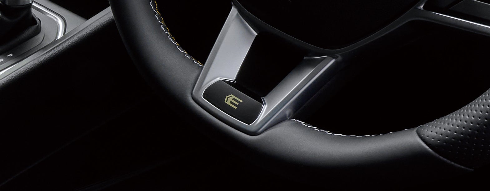 ・ 専用ステアリングホイールブリリアントブラック&ウォームチタニウムエンブレムベゼル