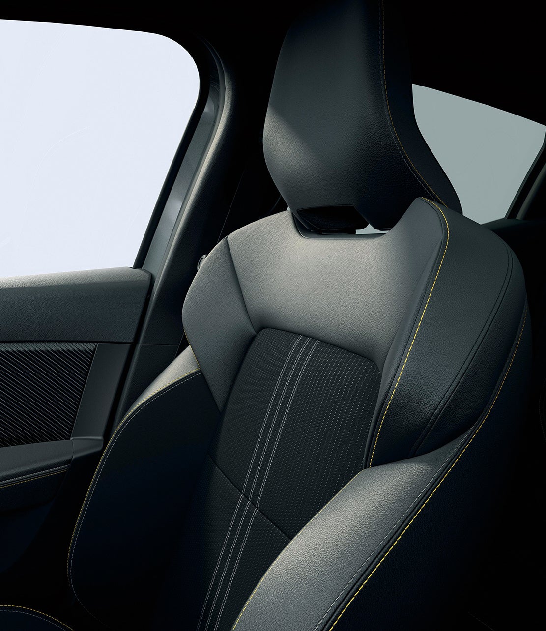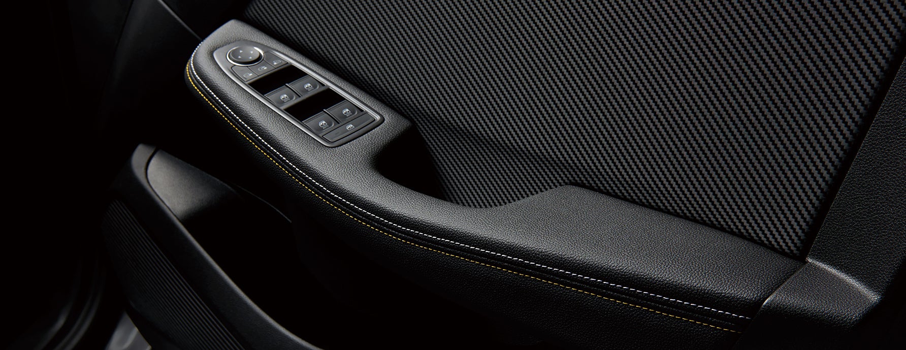 インテリアにもウォームチタニウムカラーのインサートやステッチが効果的に使われるほか、カーボン調ダッシュボードやドアトリム、アルミペダルによって、室内空間をモダンかつスポーティな雰囲気に仕立てています。