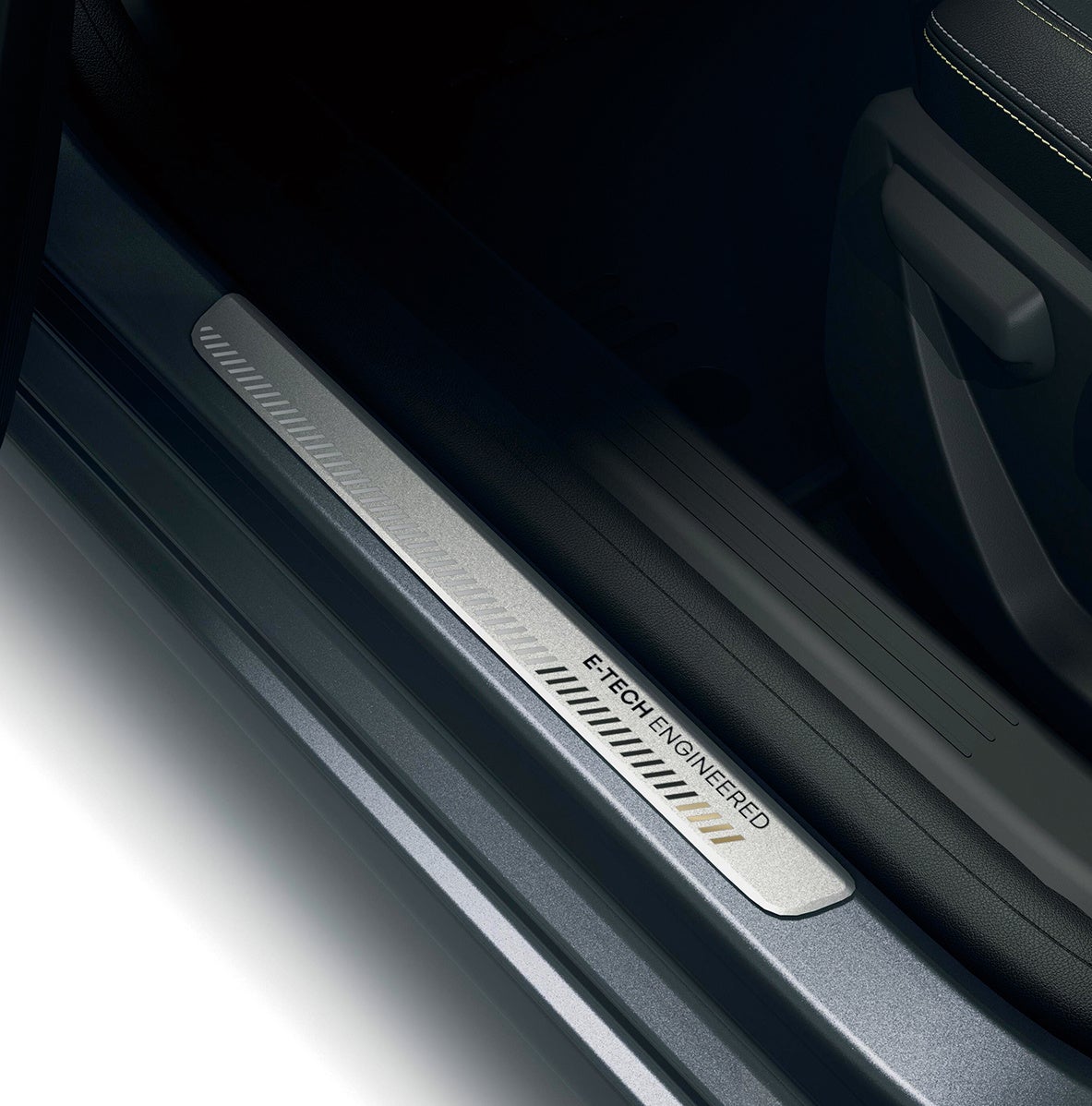 ブリリアントブラックの前後エンブレム・フロントグリルガーニッシュ・ウォームチタニウムカラーのF1®ブレード・リアバンパーフィニッシャーが、ルノー ルーテシア E-TECH エンジニアードのエクステリアデザインに先進的でスポーティな印象を与えています。