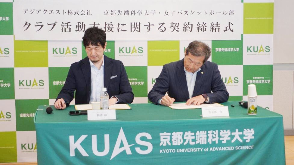 IoTやAIなどのデジタル技術を活用し、企業のデジタルトランスフォーメーション(DX)を支援するアジアクエスト(本社:東京都文京区)は、2025年6月4日(水)、京都先端科学大学(KUAS)(所在地:京都市右京区)の女子バスケットボール部とクラブ活動支援に関する契約の締結式を、京都先端科学大学 京都太秦キャンパスにて開催いたしました。