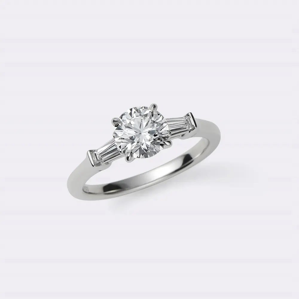 【1.0ct ラウンド×テーパーバケットダイヤモンドリング】