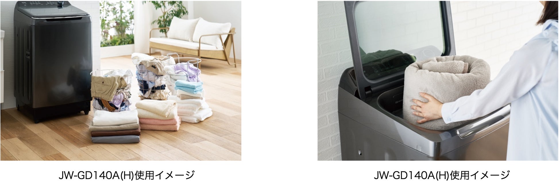 この度発売するJW-GD140Aは、当社最大容量となる14.0㎏の全自動洗濯機です。大容量に加え、洗濯の手間を軽減する「液体洗剤自動投入機能」や、洗濯槽を清潔に保つ「スクラブ自動槽洗浄」を搭載。また低騒音の「DDインバーターモーター」を採用することで、忙しいご家庭でも時間帯を気にせず、楽にまとめ洗いをして頂けるよう開発いたしました。