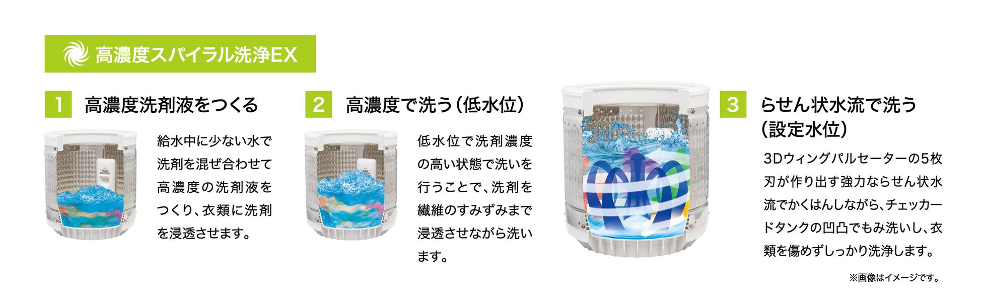 ①洗剤の力を引き出してしっかりキレイ「高濃度スパイラル洗浄EX」
