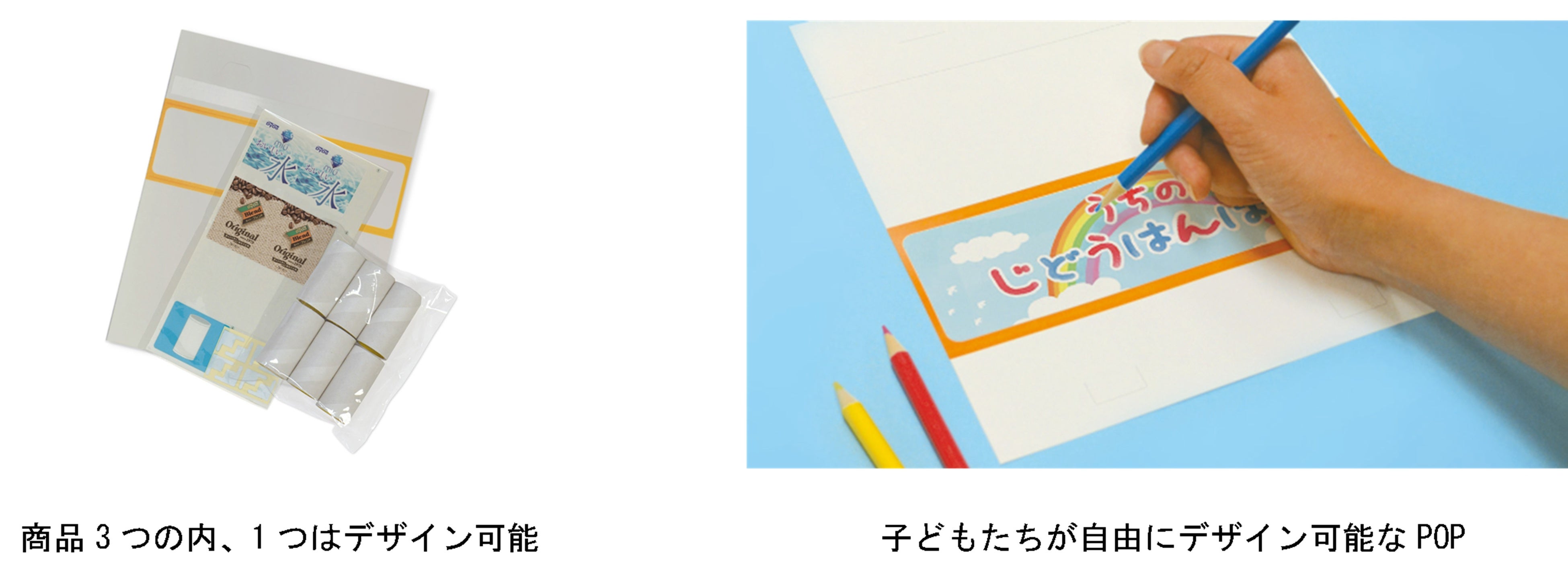 自動販売機天面のPOPは、子どもたちが自由にデザイン可能。子どもたちが個性を活かし、世界に1つだけ