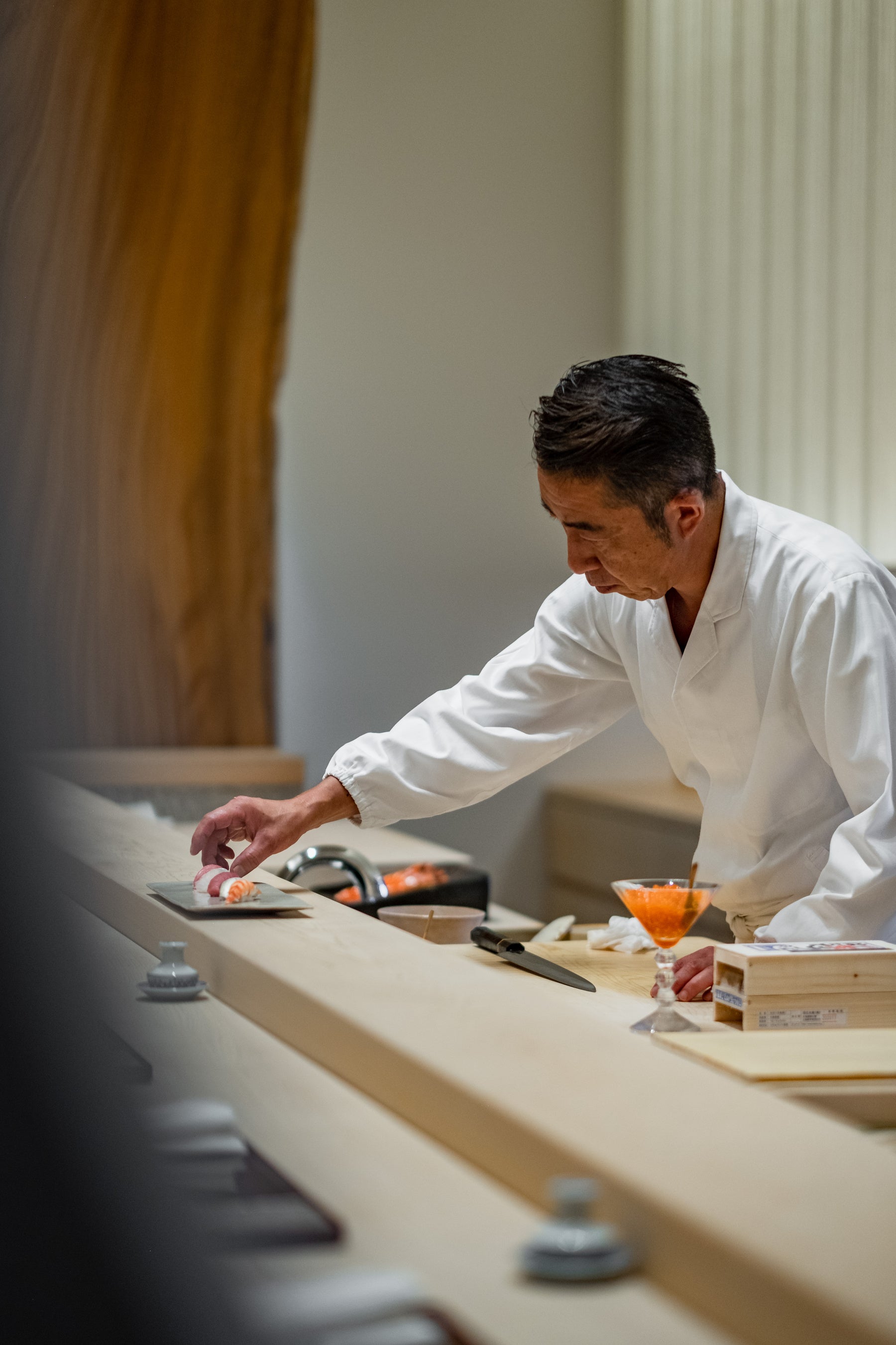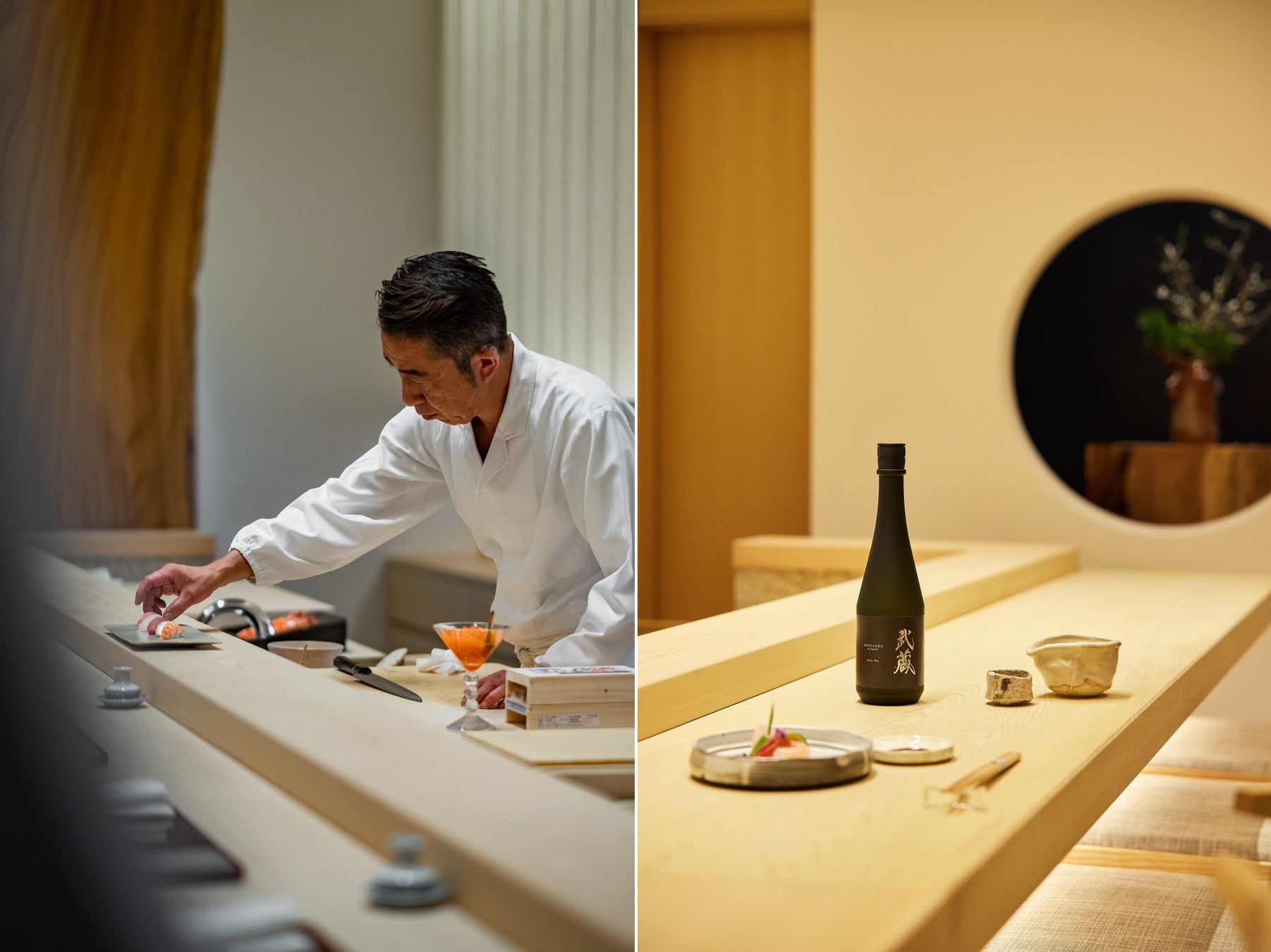 江戸前鮨店「武蔵 by アマン」では、12月26日(木)から2025年3月31日(月)までの期間限定で、親方 武蔵が故郷の山梨県で自ら育てた米を醸造して作る、日本酒とクラフトスピリッツのテイスティングセットをご提供いたします。「武蔵 by アマン エクストラ ドライ」、「武蔵 by アマン エクストラ ドライスパークリング」、「クラフトスピリッツ 武蔵 by アマン」のセットはどれも親方の料理や鮨との相性のよい食中酒です。日本が誇る鮨の文化が織りなす、「武蔵 by アマン」ならではの洗練されたおまかせメニューと酒のハーモニーをどうぞご賞味ください。