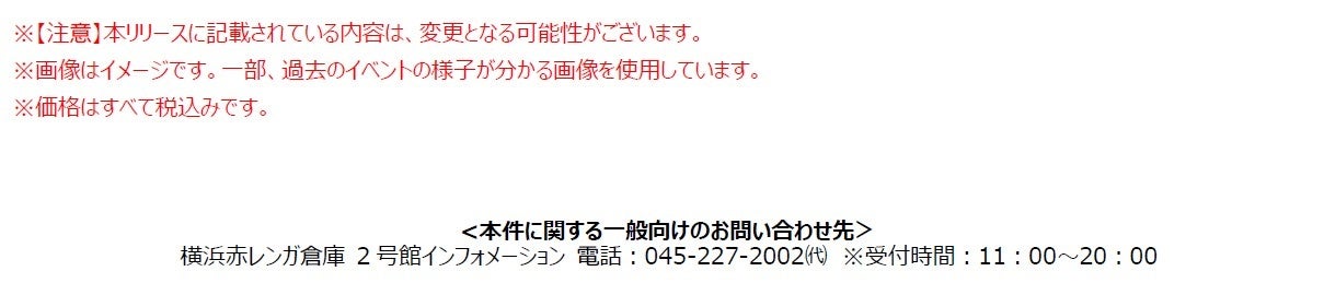 ・主催 :横浜赤レンガ倉庫(株式会社横浜赤レンガ・公益財団法人横浜市芸術文化振興財団)