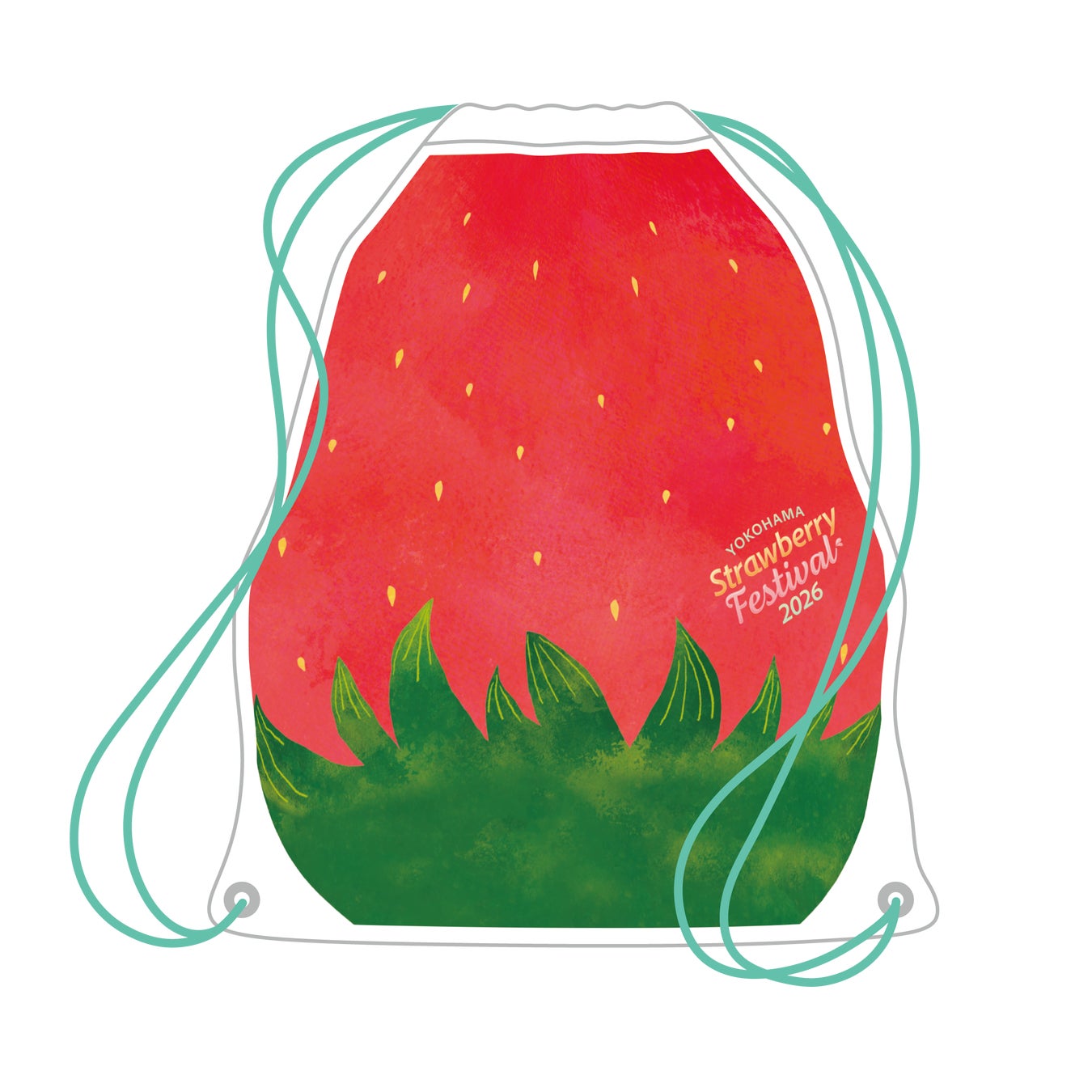イベント期間中、横浜赤レンガ倉庫1・2号館内の対象店舗で1会計につき2,000円以上(税込)お買い上げのお客様に、イベントキービジュアルのデザインをあしらった「いちごナップサック」をお会計時にプレゼント!横浜赤レンガ倉庫を訪れた記念として、いちごを身に着けて会場内や街歩きを楽しめるアイテムです。