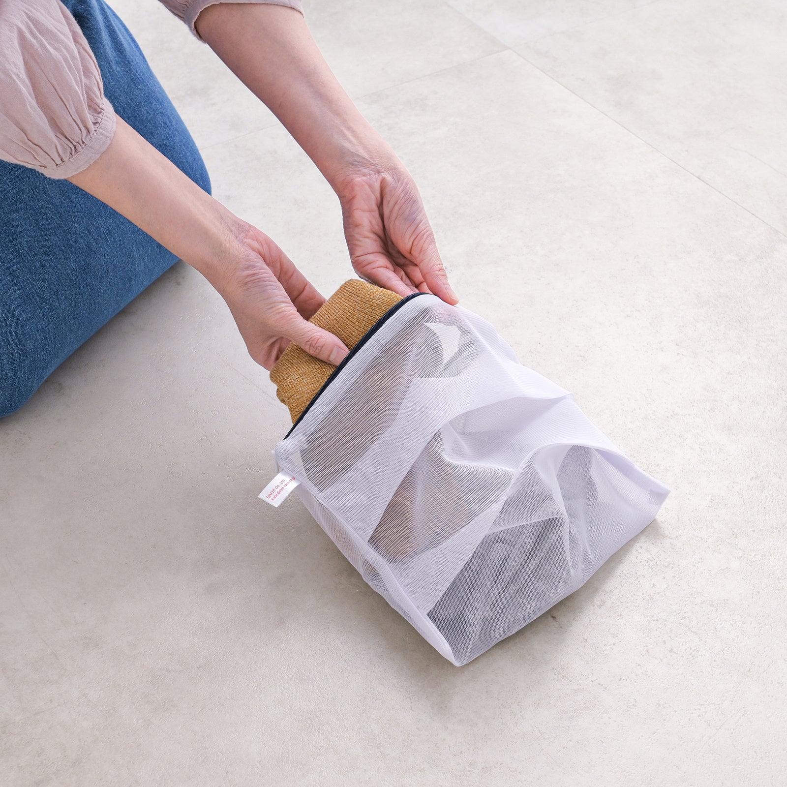網目の細かいガードメッシュが洗濯物から出る糸くずの侵入を抑え、ネット内の洗濯物をやさしく洗います。