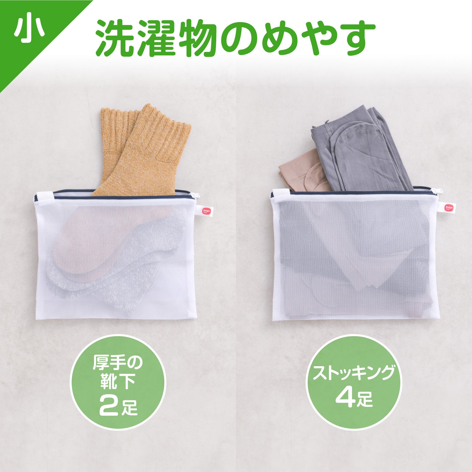 洗濯物のめやす:厚手の靴下なら2足、ストッキングなら4足