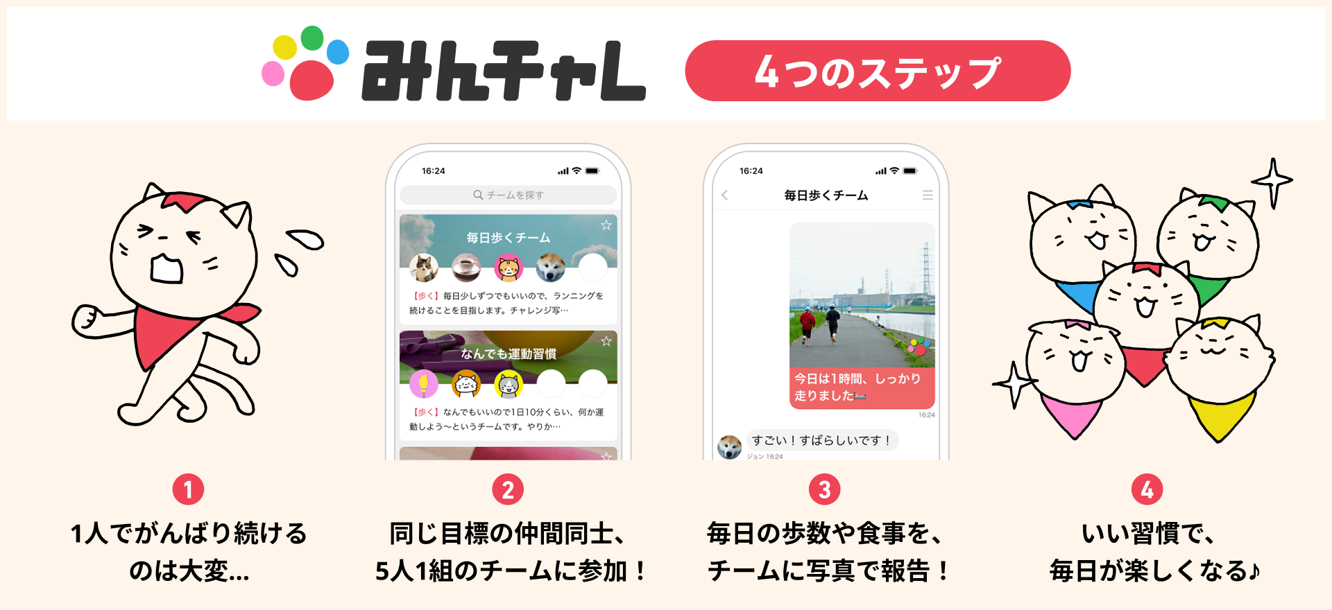 ・5人で励まし合いながら楽しく続けるデジタルピアサポートアプリ