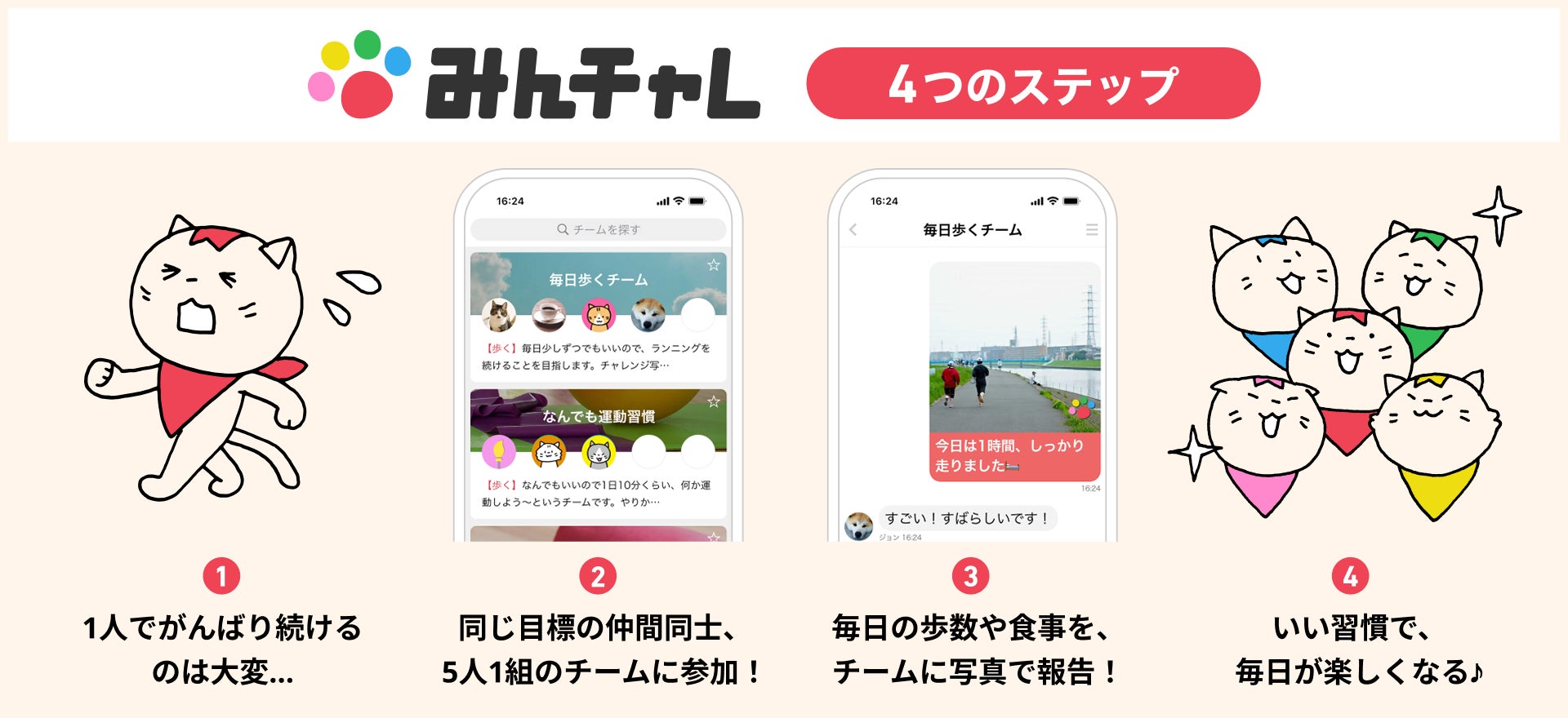 当社は「テクノロジーで幸せな習慣化を増やす」をミッションに掲げ、デジタルピアサポートアプリ「みんチャレ」を開発・運営しています。このアプリは、多くの地方自治体の健康増進事業において、高齢者のフレイル予防やデジタルデバイド※解消を目的として導入が進んでいます。