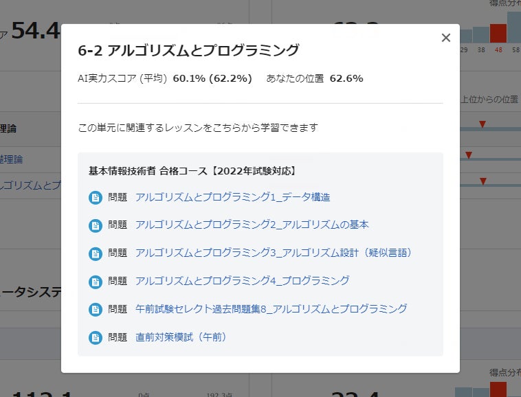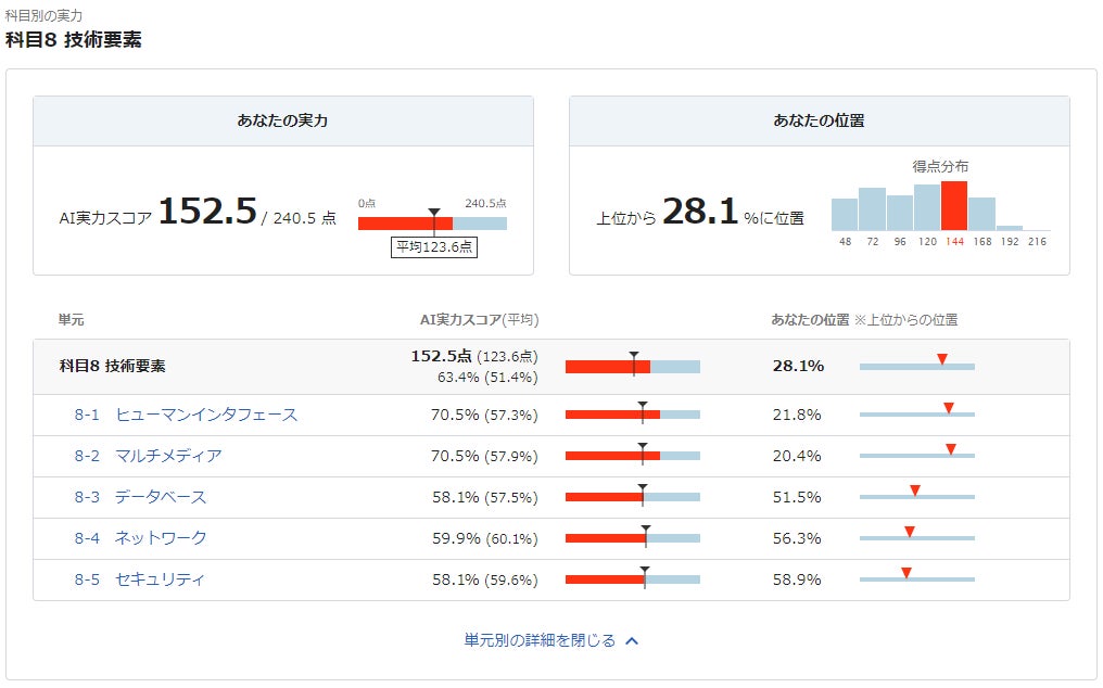 *2 : 単元別スコアは、その単元に関連する問題を、1回でも学習した受講者の中での位置を表示しています。