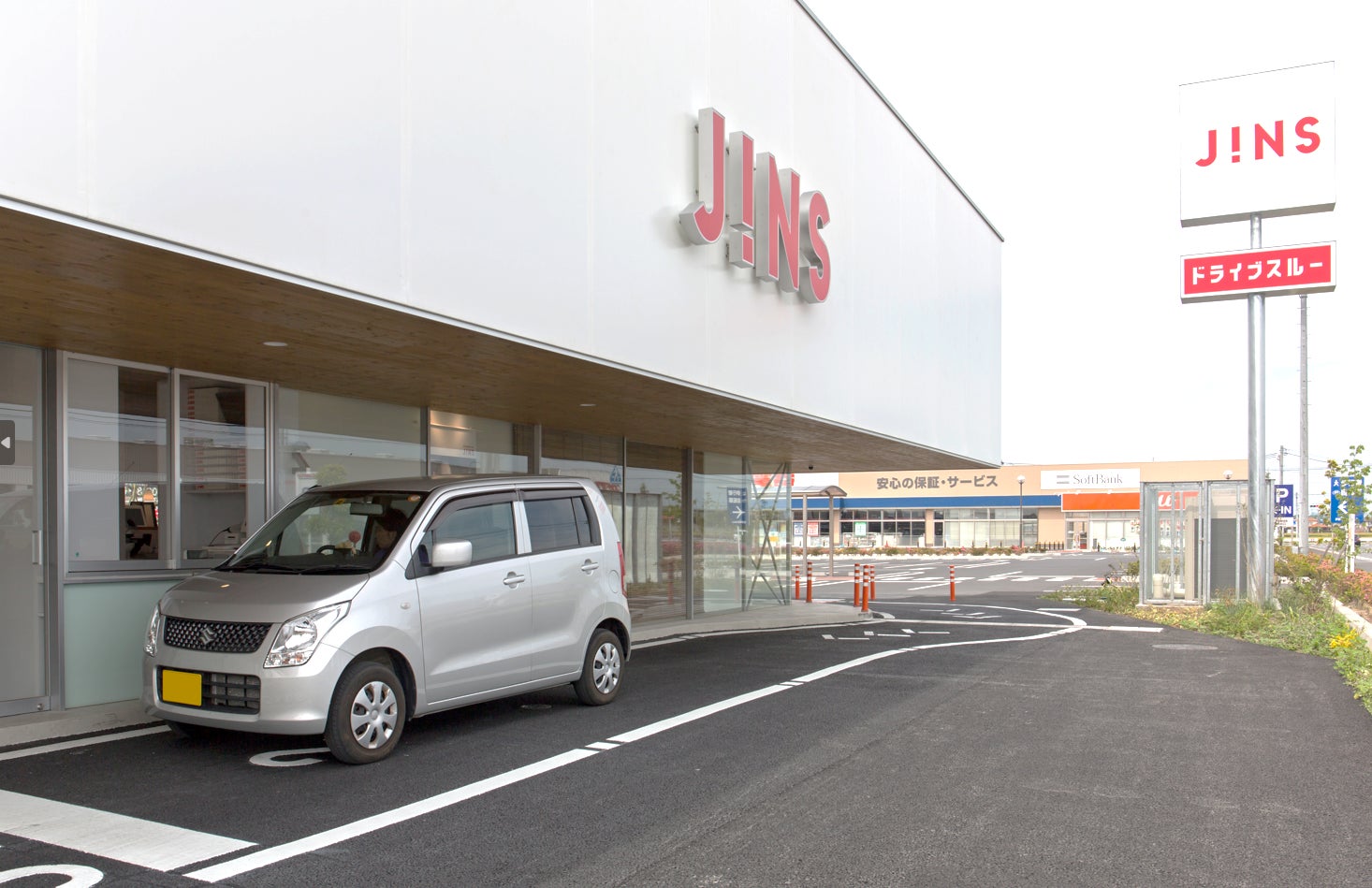 群馬県は、運転免許取得率や世帯当たりの自動車保有台数が非常に高く、全国有数の“クルマ大国”としても知られています。そのような背景から2013年4月、世界で初めてドライブスルー形式によるメガネの販売サービスを併設したロードサイド店舗として「JINSパワーモール前橋みなみ店」を群馬県前橋市にオープン。革新的なこのサービスは、主な交通手段が車である地域で車に乗ったままメガネの購入や受け取りができて便利と話題になり、多数のメディアでも取り上げられるなど、今なお大きな反響をいただいています。
