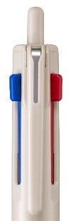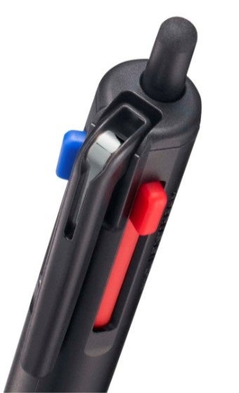赤・青インクは、これまでと同じスライドノックですが、新機構により、どのインク色が繰り出された状態でも、色の繰り出しと解除が可能です。