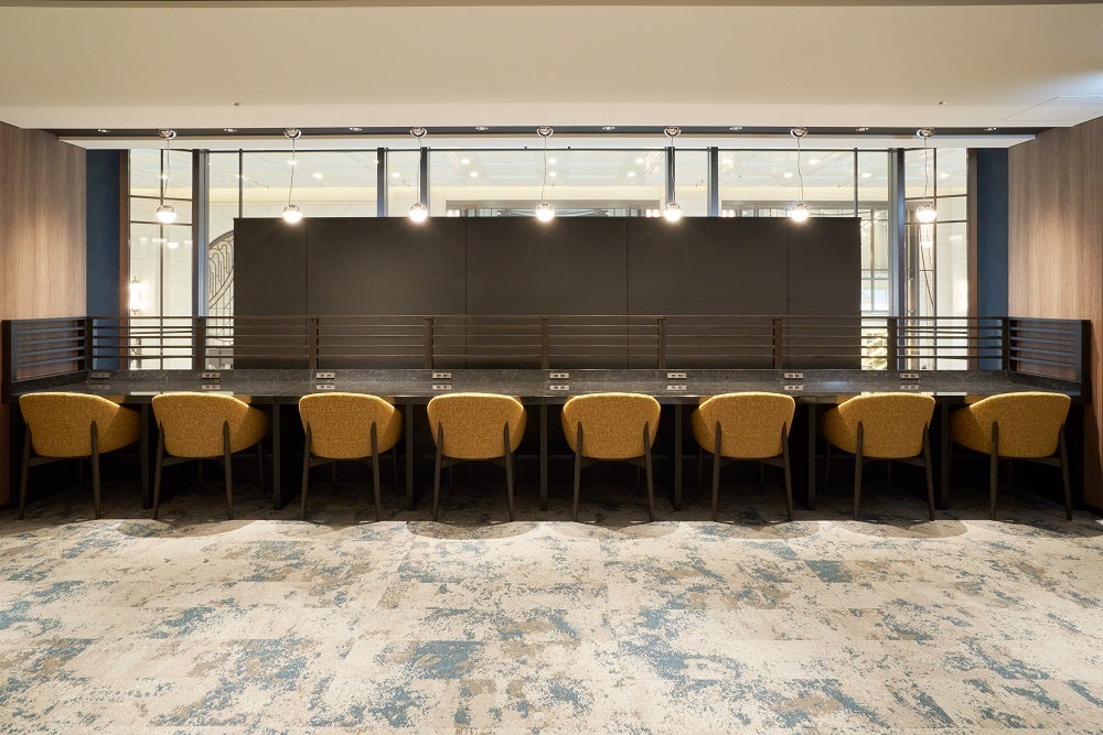 アルフレックス製で誂えたソファ席、カウンター席を設置し、フリードリンクやフリーWi-Fi、街のインフォメーション(道案内/買い物相談)などのサービスを提供します。観光の合間の休憩、ビジネス会議の時間調整など、どのようなシーンでも快適にご利用いただけるように配慮しました。
