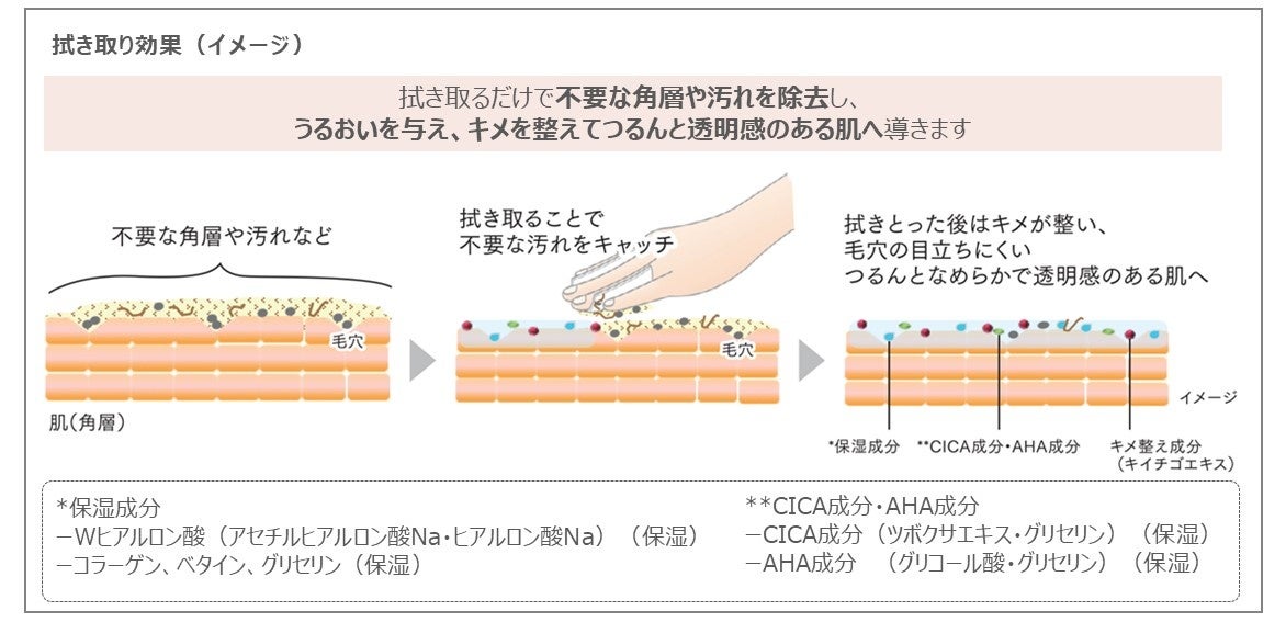 ●拭き取るだけで不要な角層・毛穴汚れを取り除くピーリング効果。
