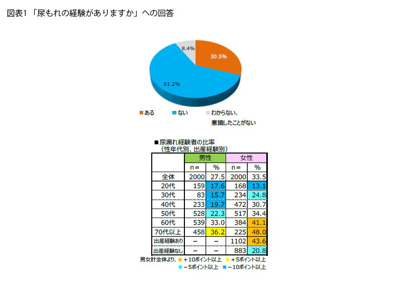 3割が ”尿もれ経験者”、女性60代以上は4割超に