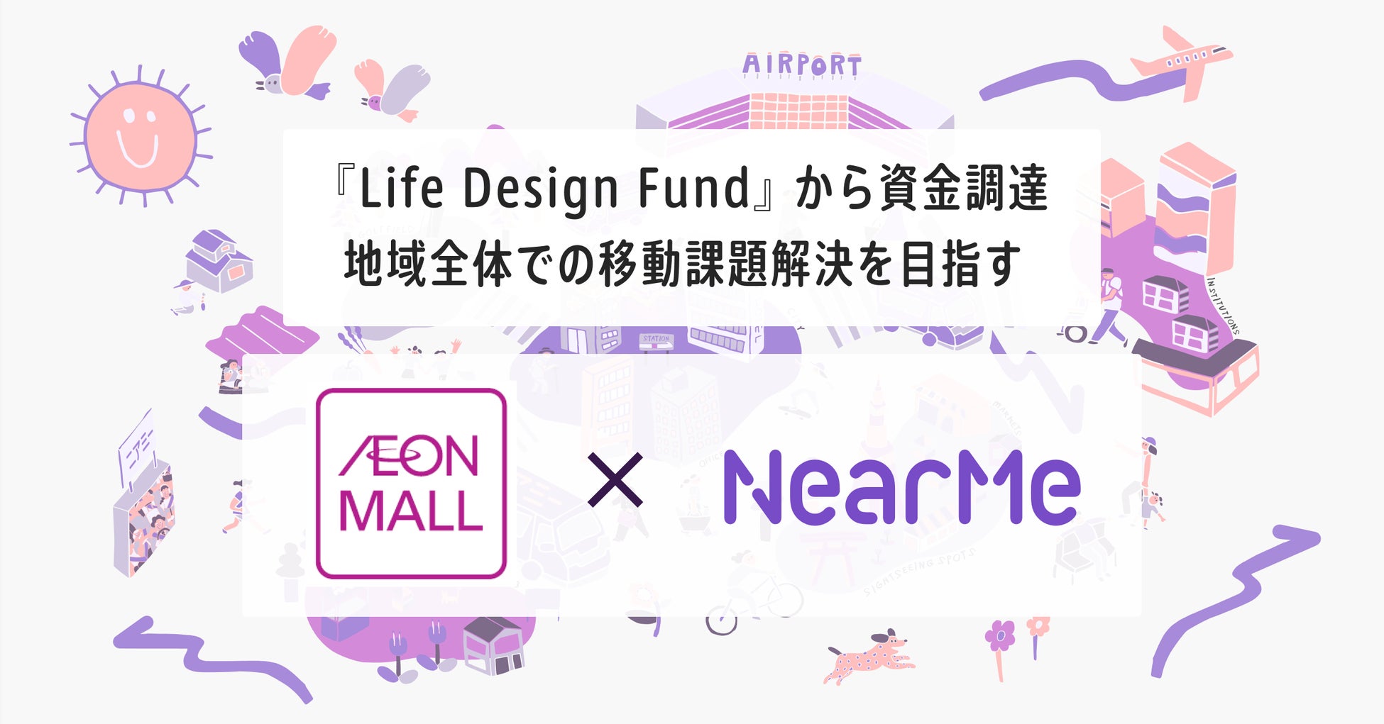 移動の課題に取り組むソーシャルデザインカンパニーの株式会社NearMe(本社:東京都中央区、代表取締役社長:髙原幸一郎、以下:ニアミー)は、イオンモール株式会社(本社:東京都港区、代表取締役社長: 大野惠司、以下:イオンモール)を引受先とした第三者割当増資によって資金調達を実施しました。なお、今回の資金調達は、イオンモールとイグニション・ポイントベンチャーパートナーズ株式会社(本社:東京都渋谷区、代表取締役:田代友樹、以下:IGPVP)がコーポレートベンチャーキャピタルを共同で運営する「Life Design Fund」を通じた出資となります。