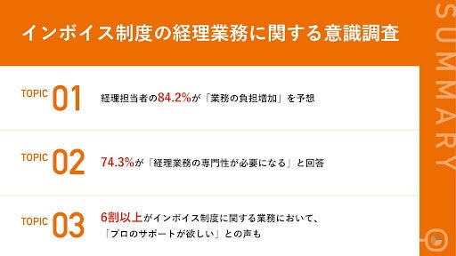 【インボイス制度開始までもうすぐ】経理担当者の84.2%が「業務の負担増加」を予想、74.3%が「経理業務の専門性が必要になる」と回答