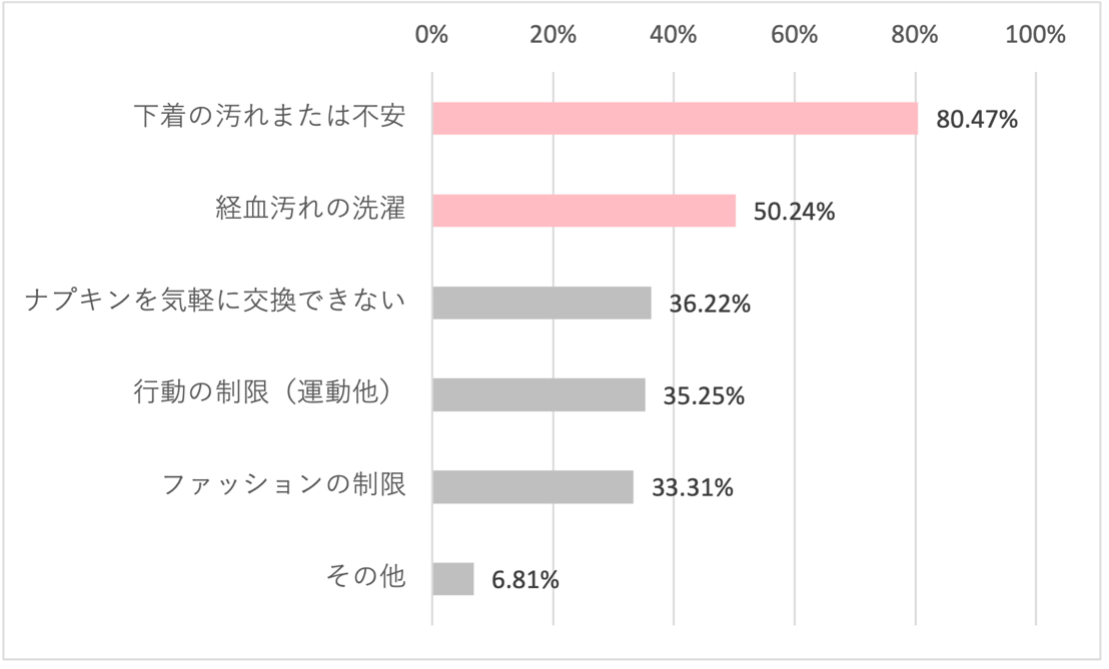 私たちの顧客1,234名を対象にしたアンケートでは、生理中に下着を汚した経験がある、または不安を感じている方がおよそ80%、経血汚れの洗濯でお悩みの方も半数以上いることがわかりました。そこで当社の女性スタッフが、自身も向き合っている生理期間中の悩みを解消し、少しでも快適に過ごしてほしいという想いから、経血で汚れてしまった下着を手軽に洗濯できる洗剤を企画することとなりました。