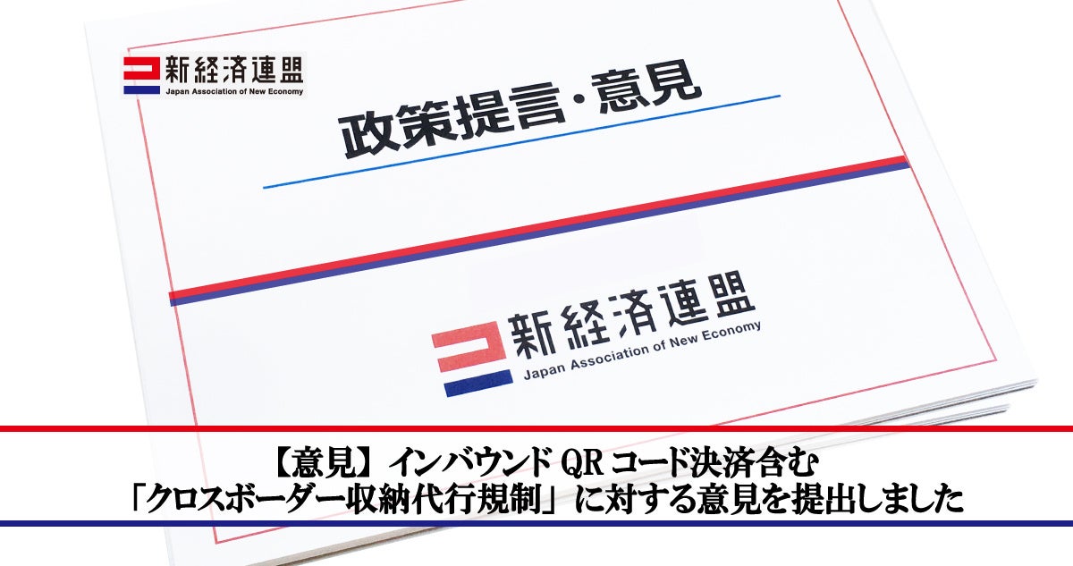2024年12月24日、一般社団法人 新経済連盟(所在地:東京都港区、代表理事:三木谷 浩史)は、金融庁が開催する「金融審議会 資金決済制度等に関するワーキング・グループ」に対して、EC決済やインバウンドQRコード決済に大きな負の影響を及ぼす可能性のある「クロスボーダー収納代行規制」の議論および報告書案についての意見を提出しました。