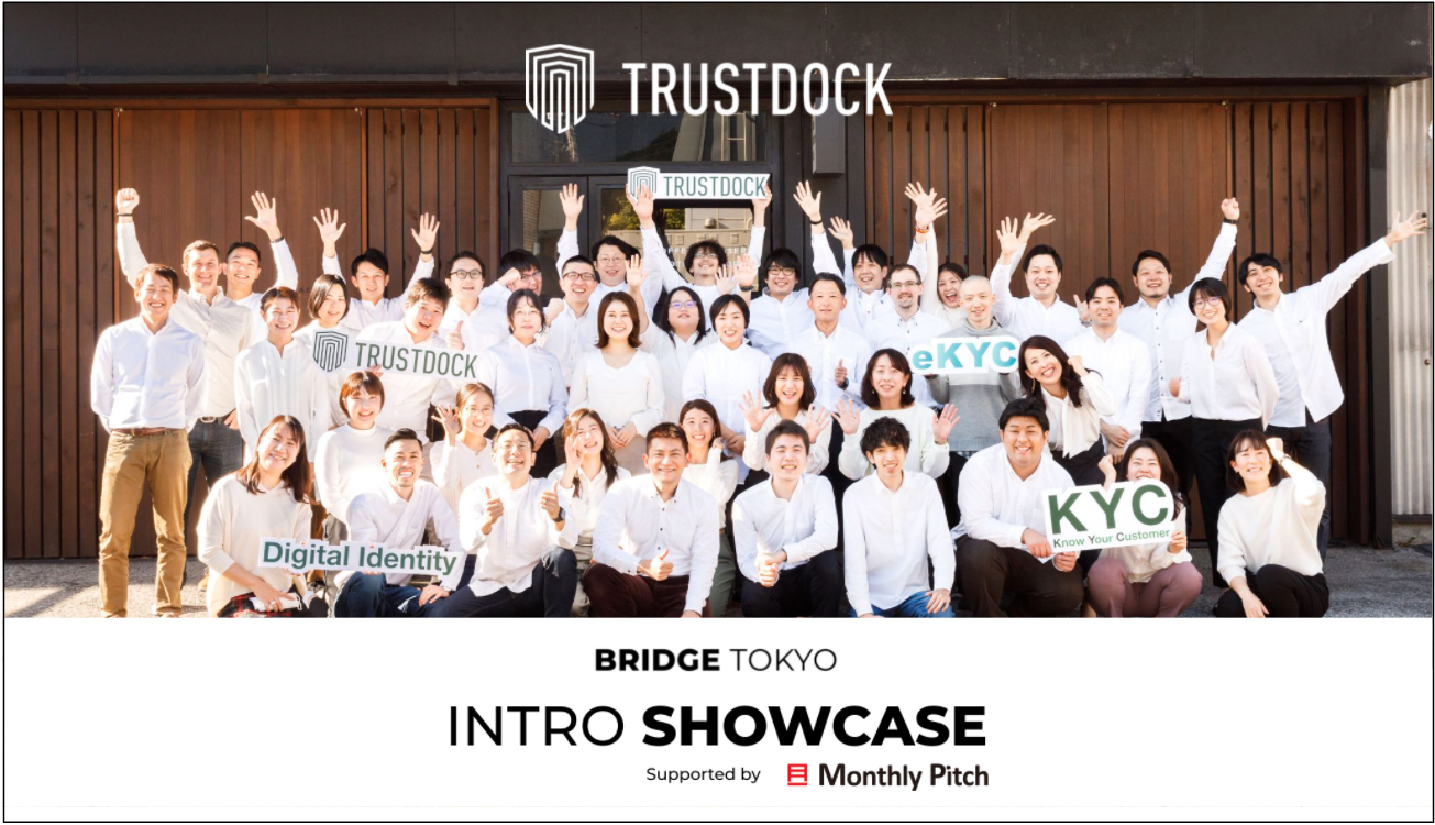 株式会社TRUSTDOCK(本社:東京都千代田区、代表取締役:千葉 孝浩、以下 TRUSTDOCK)は、プレスリリース配信サービス「PR TIMES」等を運営する株式会社 PR TIMES(東京都港区、代表取締役:山口拓己、東証一部:3922)の子会社でスタートアップメディア「BRIDGE」事業を運営する株式会社THE BRIDGE(本社:東京都港区、代表取締役:平野 武士、以下 THE BRIDGE)が主催する次世代スタートアップと「デジタル民主化」を語るオンラインイベント「BRIDGE Tokyo」において若手キャピタリストが選ぶ次世代スタートアップ「INTRO Showcase Supported by Monthly Pitch」注目の11社に選出されました。