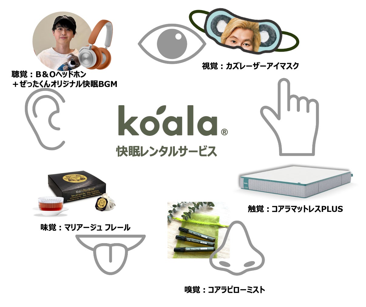 提供アイテム:コアラマットレスPLUS、コアラピロー、ミライカスタムベッドフレーム、コアラソファーベッド CUSHY等