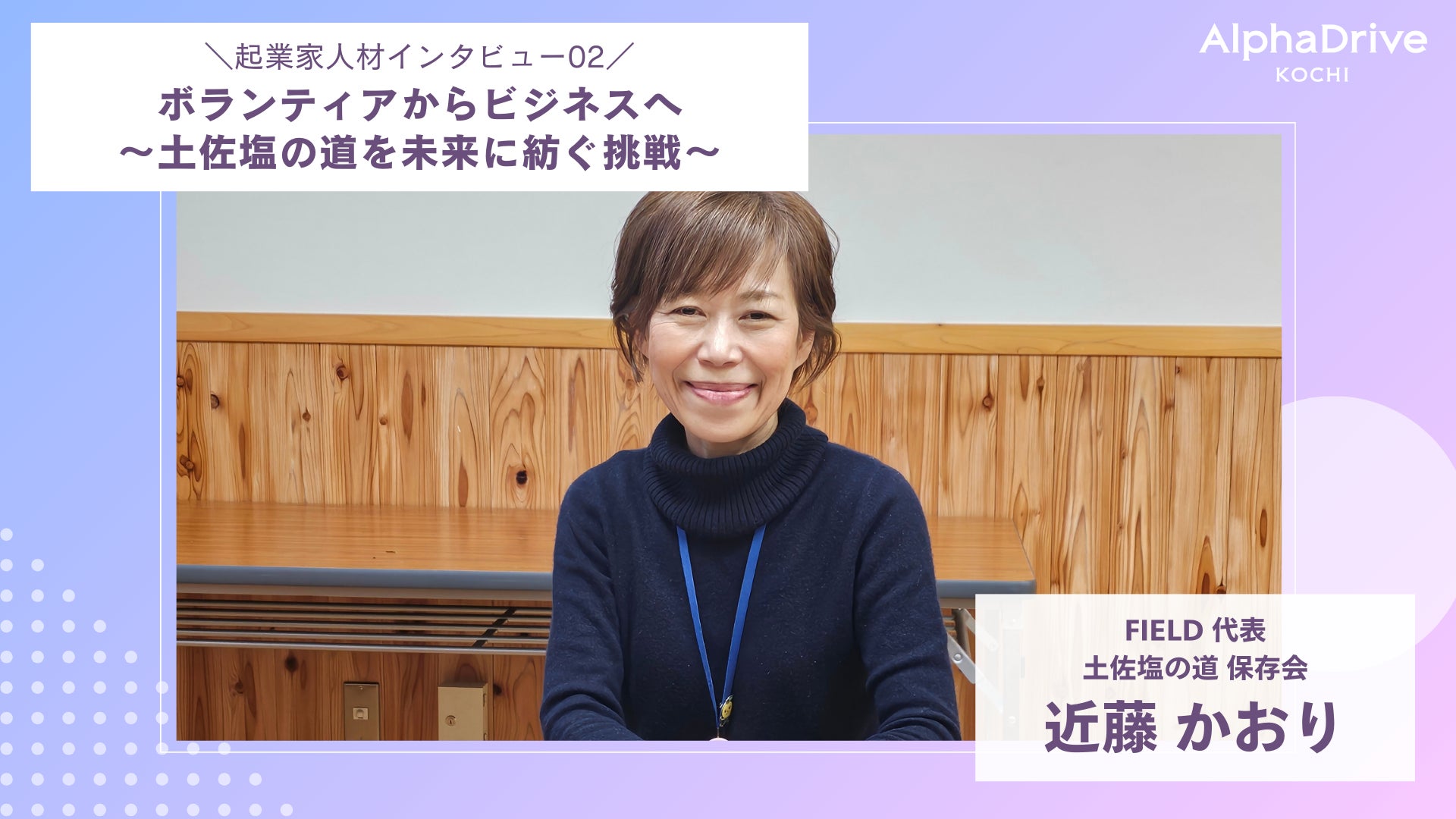 ※近藤さんは、「こうちスタートアップパーク」の起業支援プログラムに参加された方です。「こうちスタートアップパーク」は、高知県が主催する起業支援のプラットフォームであり、株式会社アルファドライブは起業支援業務の受託業者です。