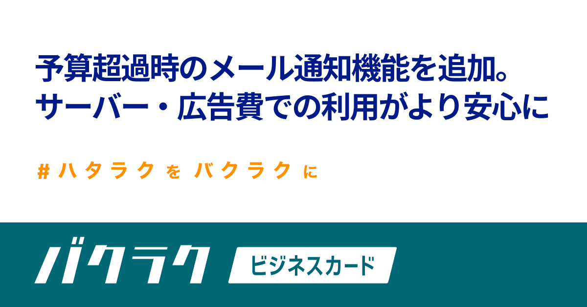 バクラクビジネスカード、予算超過時のメール通知機能を追加。サーバー・広告費での利用がより安心に
