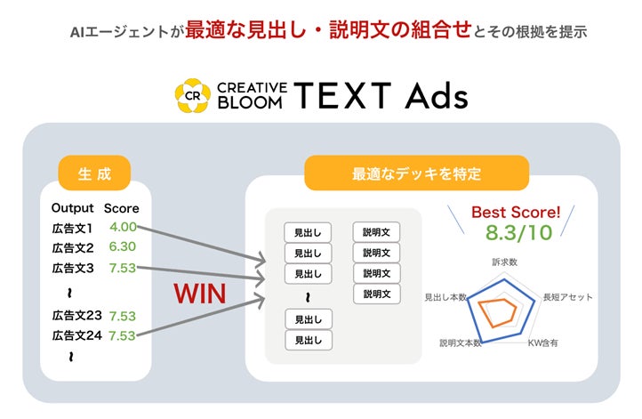 博報堂DYホールディングス、博報堂テクノロジーズ、AIがリスティング広告のパフォーマンスを最大化「CREATIVE BLOOM TEXT Ads」にRSAデッキ自動最適化機能を搭載