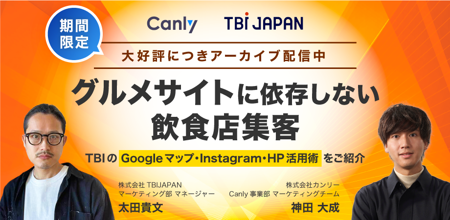 参加者満足度95%!? 注目のウェビナーレポートを公開!「グルメサイトに頼らない飲食店集客〜TBIのGoogleマップ・Instagram・HP活用術をご紹介〜」
