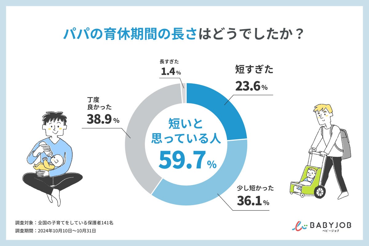 5人に3人がパパの取得した育休期間が短いと感じているという結果に