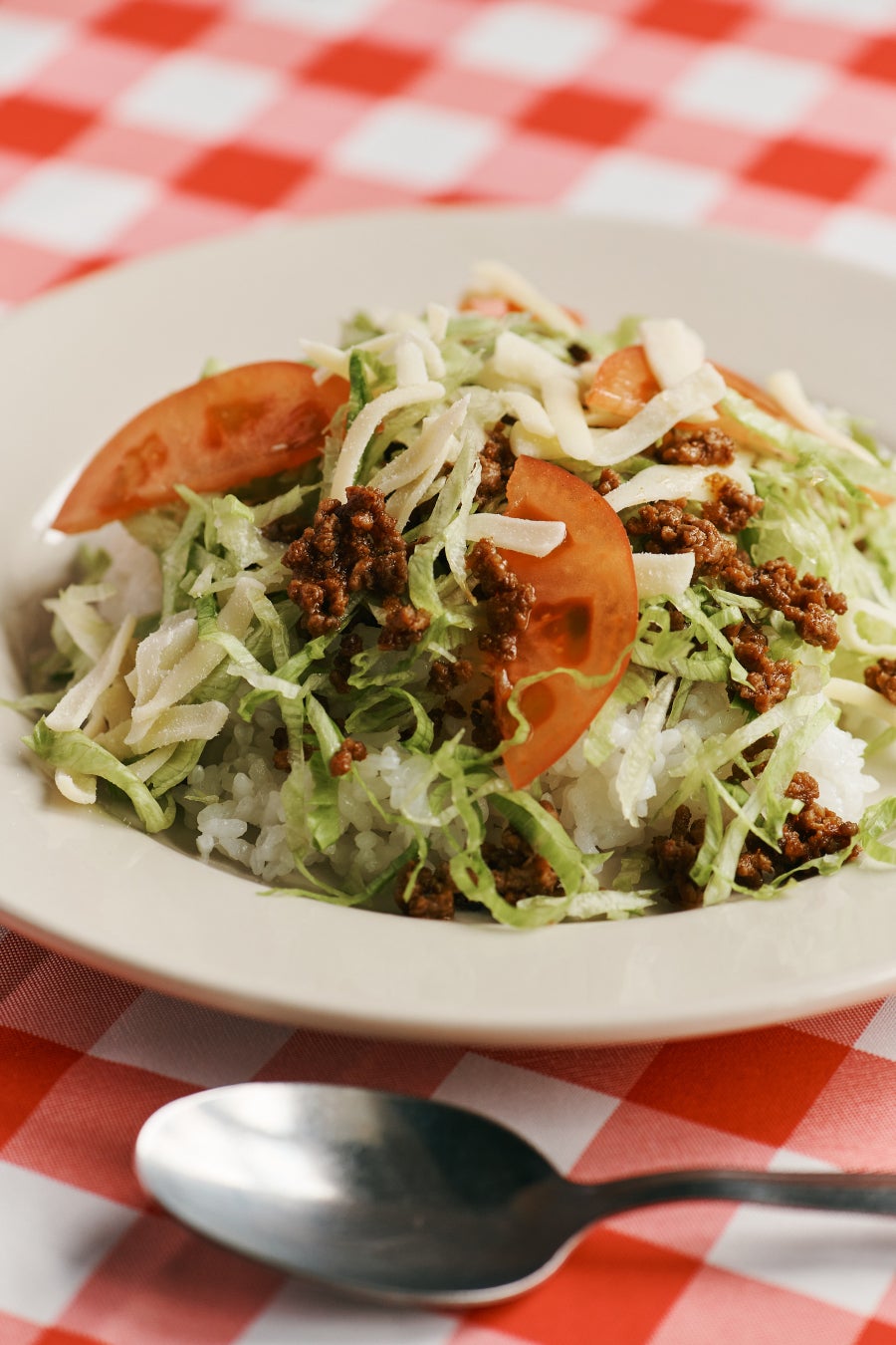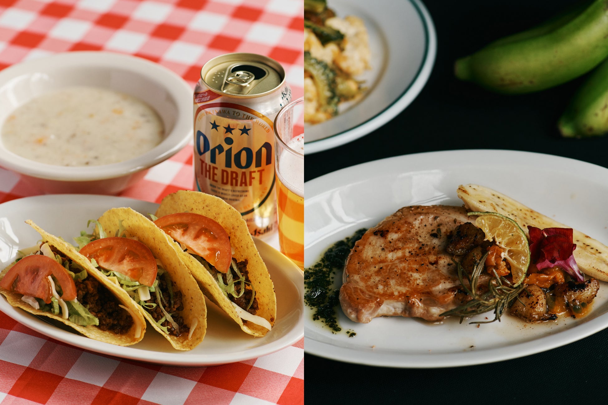 米軍基地の影響を色濃く受けて変容してきた戦後沖縄の外食シーン。いまも幾つかの店頭に掲げられている「Aサイン」(※)は一つのシンボルとして街の風景に溶け込んでいます。そんなお店で出会った「タコス」や「タコライス」を現地のレシピで再現します。